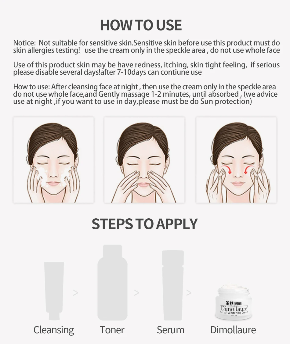 Название продукта:Dimollaure мощный травяной крем для отбеливания веснушек
