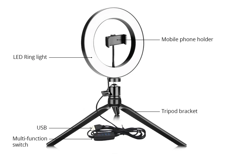 Светодиодный кольцевой светильник с регулируемой яркостью и широким диапазоном затемнения от уровня-1 до уровня-10.