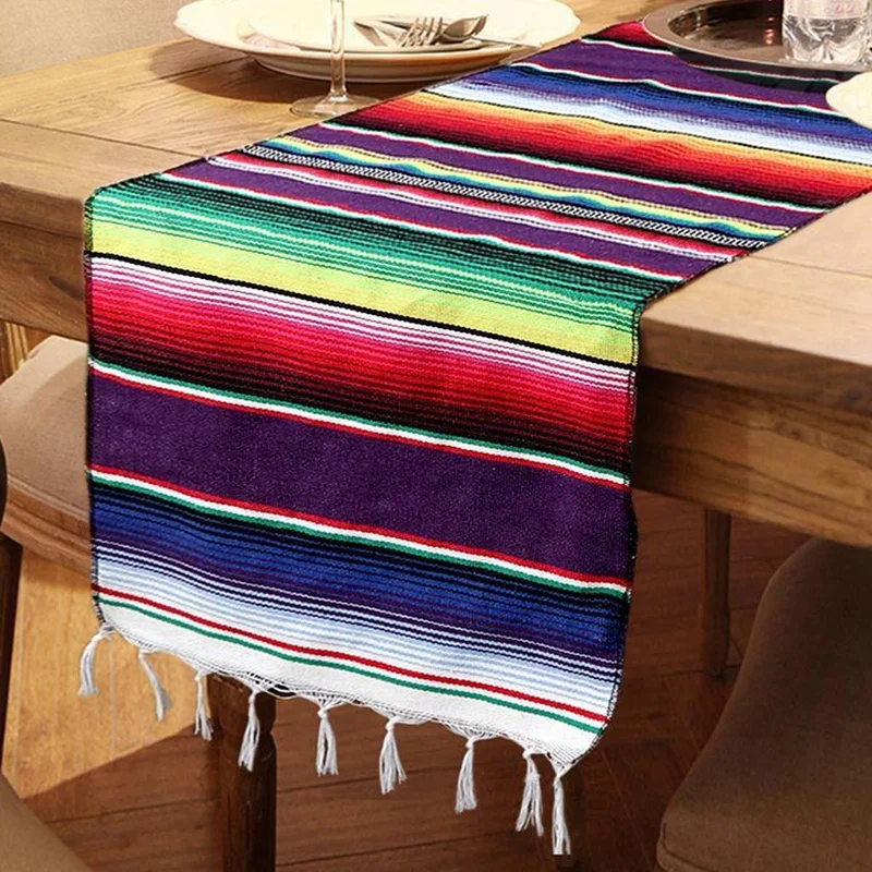 Mexican Serape Table Runner Fringe Cotton Tablecloth Fiesta Party Dinner Decor