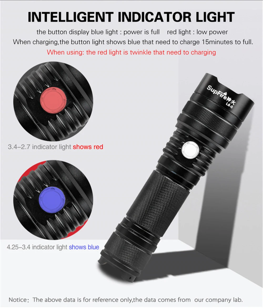 1. Один щелчок для настройки одного режима. Циклы от High-Medium-Low-Strobe-SOS.