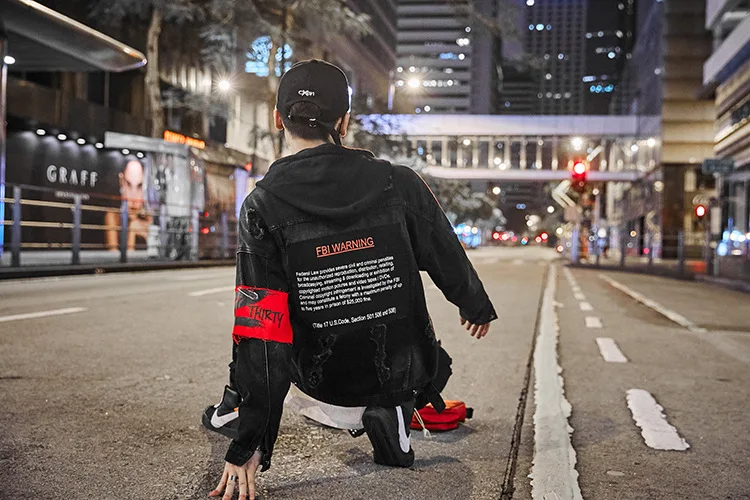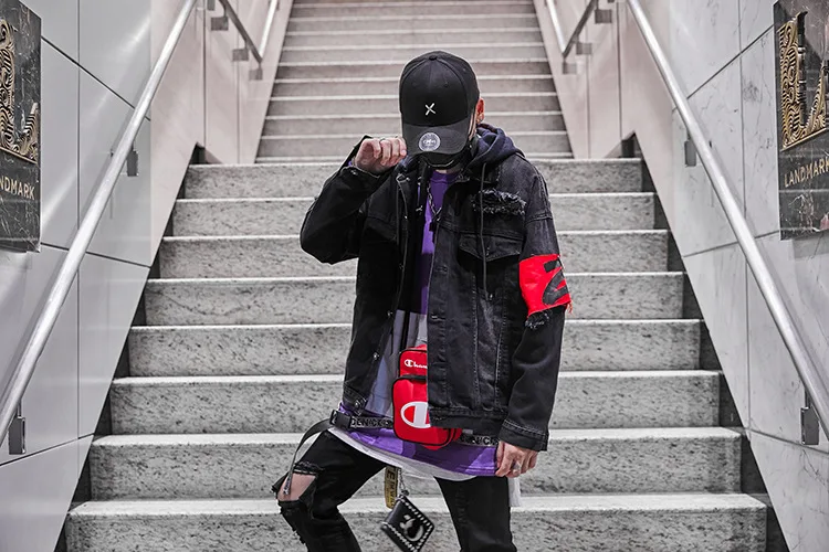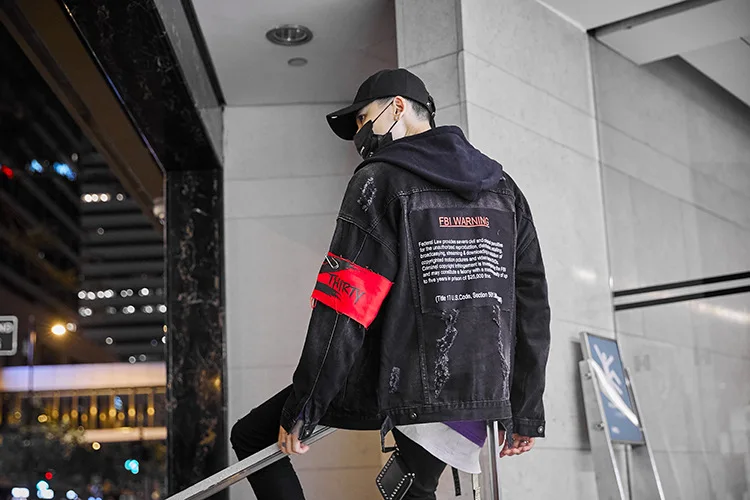 Мужская джинсовая куртка в стиле хип-хоп, черная джинсовая куртка с дырками, уличная одежда, весна-осень 2019