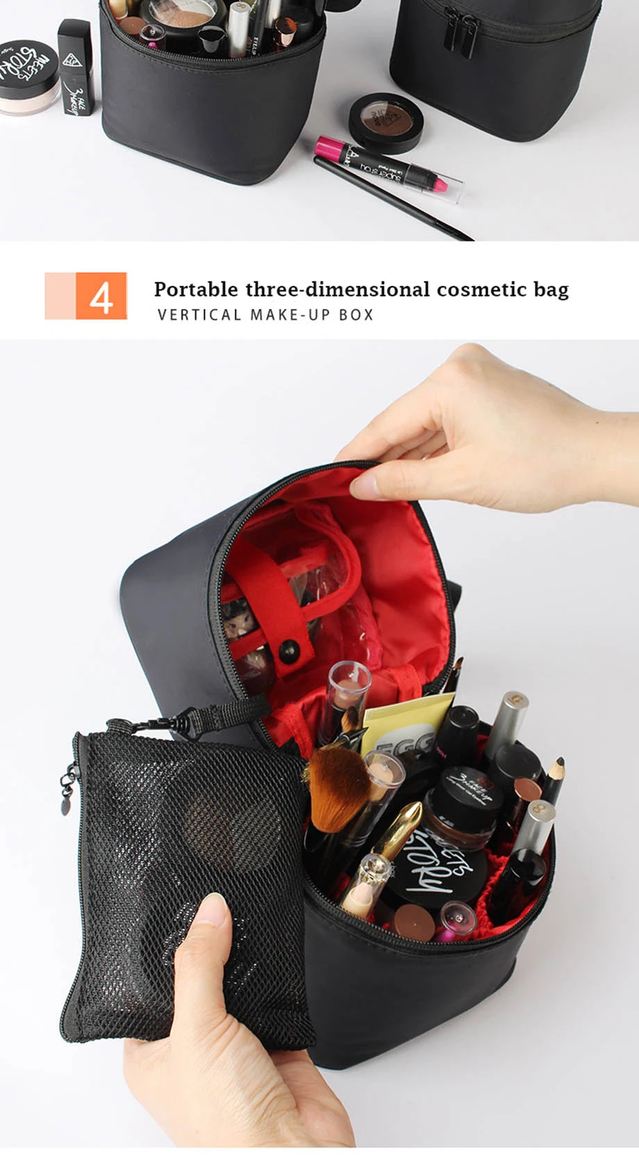Косметичка для хранения, водонепроницаемая вместительная косметичка, дорожный органайзер для макияжа, подставка для карандашей для бровей