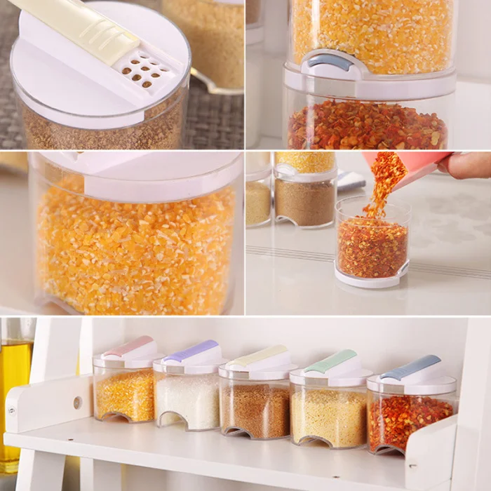 Экономичная 5 шт. банка для приправ коробка для специй прозрачная Штабелируемая герметичная двойная крышка для кухни ds99
