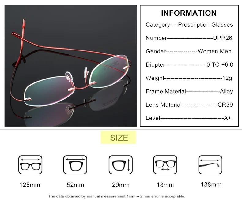 Это По рецепту для очки для чтения,Он может быть заказан с диоптрийПресбиопии.