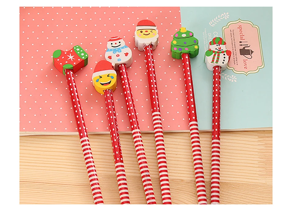 Креативные канцелярские принадлежности с рождественской тематикой 5 шт./лот Санта-Клаус Снеговик дерево карандаш с колпачок с ластиком для школы офисные принадлежности ZB155