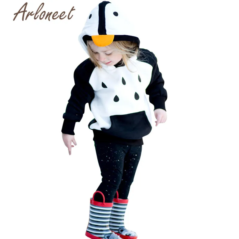 ARLONEET/Детские толстовки с длинными рукавами для мальчиков и девочек; Хлопковая толстовка с рисунком пингвина; Детские Зимние толстовки с капюшоном для девочек