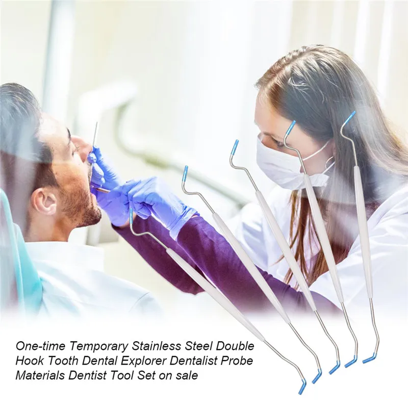 100pcs Disposable Dental Explorers Oral Mirrors Tweezers Temporary Double Ends Probe Hook Stainless Steel Dental Instrument