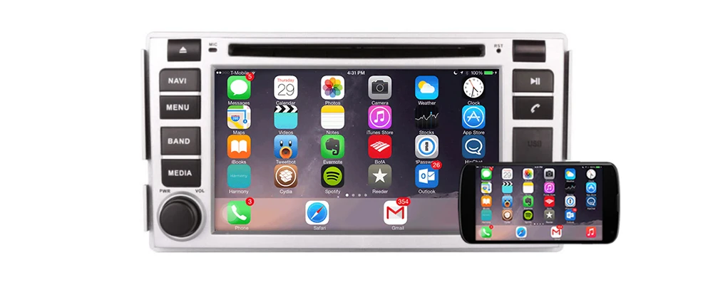 Поддержка проводной зеркальной связи с android телефоном и iPhone