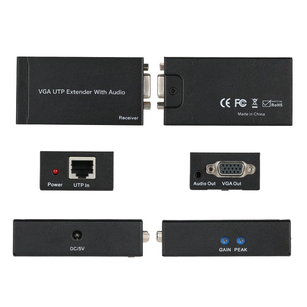 Расширение видеосигнала VGA и стереозвука макс до 300 м над одним UTP кабелем с подставкой внутри.