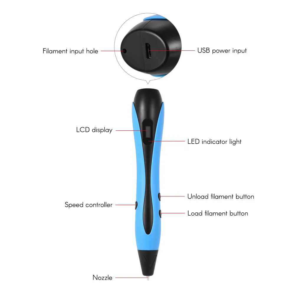 [Другие богатые аксессуары]:Этот 3D ручка совместима с пла-и АБС-пластика, которые являются 1,75 мм Диаметр. Мы также предоставляем вам 1 * набор нитей PLA (2 м * 3 цвета), 1 * доска для рисования из ПВХ. Давай, мы бы хотели, чтобы наслаждаться 3D печати Карта мира.