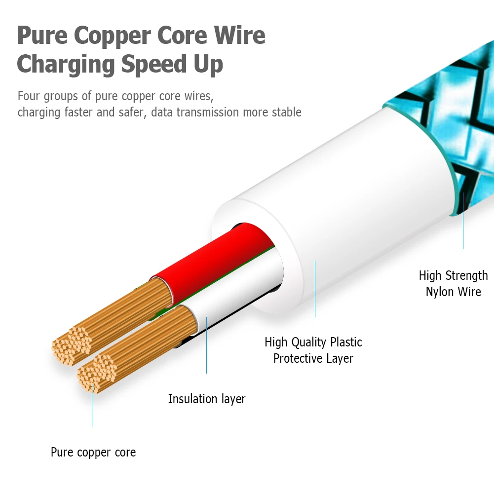 Быстрая зарядка и синхронизация данных, изготовленные с проводами с низким сопротивлением, которые позволяют нашим кабелям заряжать быстрее, чем обычные USB-кабели.