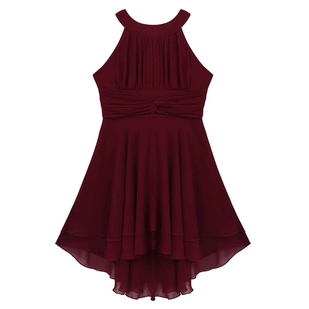 3 слоя платье, топ, на 2 года, шифоновое платье с длинным рукавом с высоким низким подолом, 1 слой атласной подкладки. Красивое и стильное платье для вашей девочки.