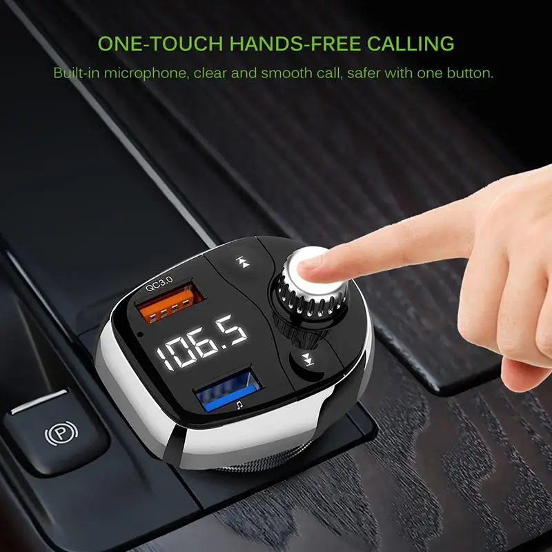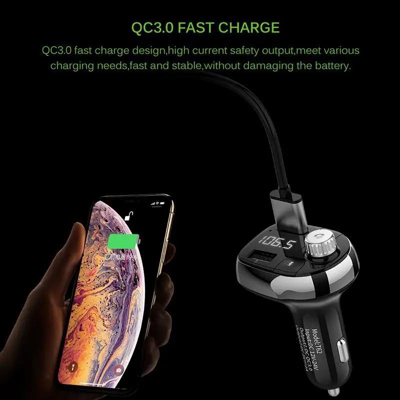 Чтобы использовать функцию воспроизведения музыки fm-передатчика, включите автомобильное fm-радио, выберите канал, убедитесь, что радиоканал чист, чтобы избежать помех от местного радиосигнала. Отрегулируйте частоту передачи FM в соответствии с каналом fm-радио автомобиля.