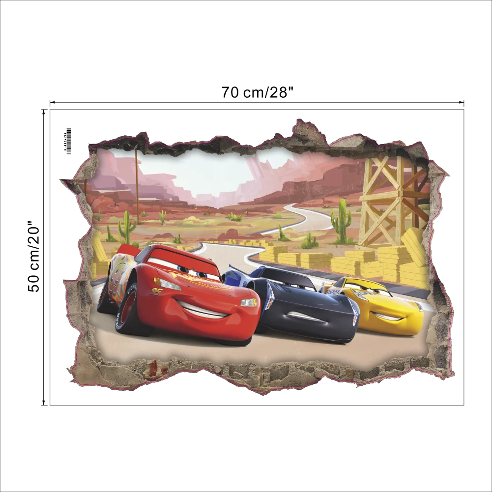 Бесплатная доставка Новый Дисней мультфильм фильм 3D вид разбитые стены Автомобили Молния Маккуин DIY настенные Стикеры для детской комнаты росписи Искусство украшение дома