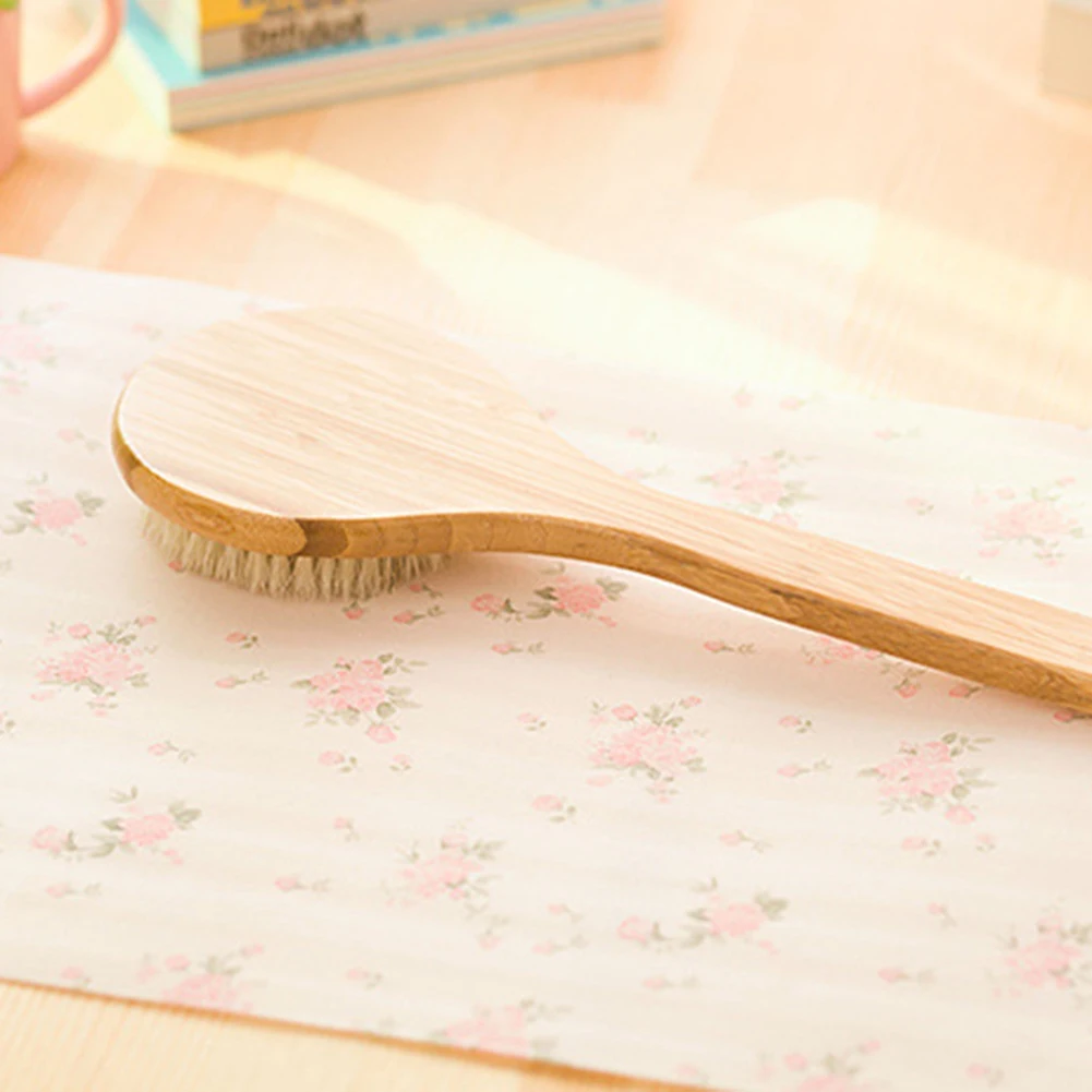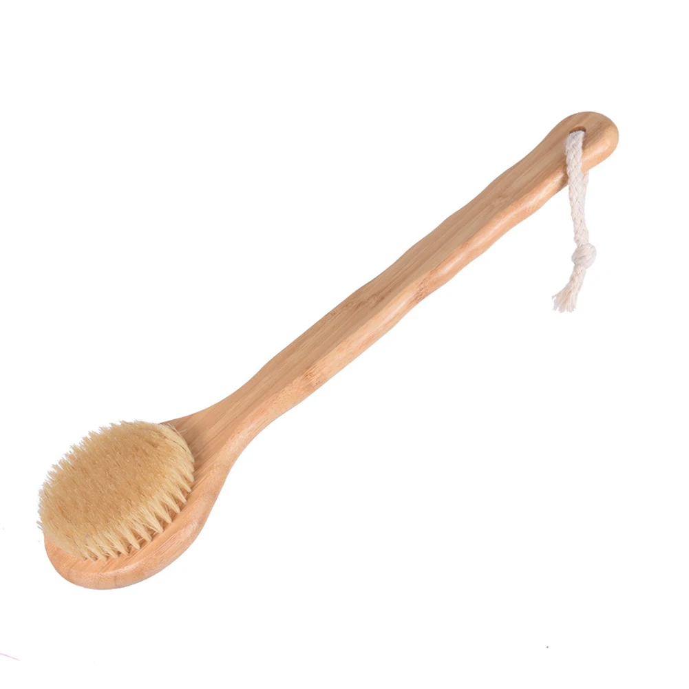 Бамбуковая длинная ручка щетка для душа Спа отшелушивающая ванна массаж спины тела скруббер