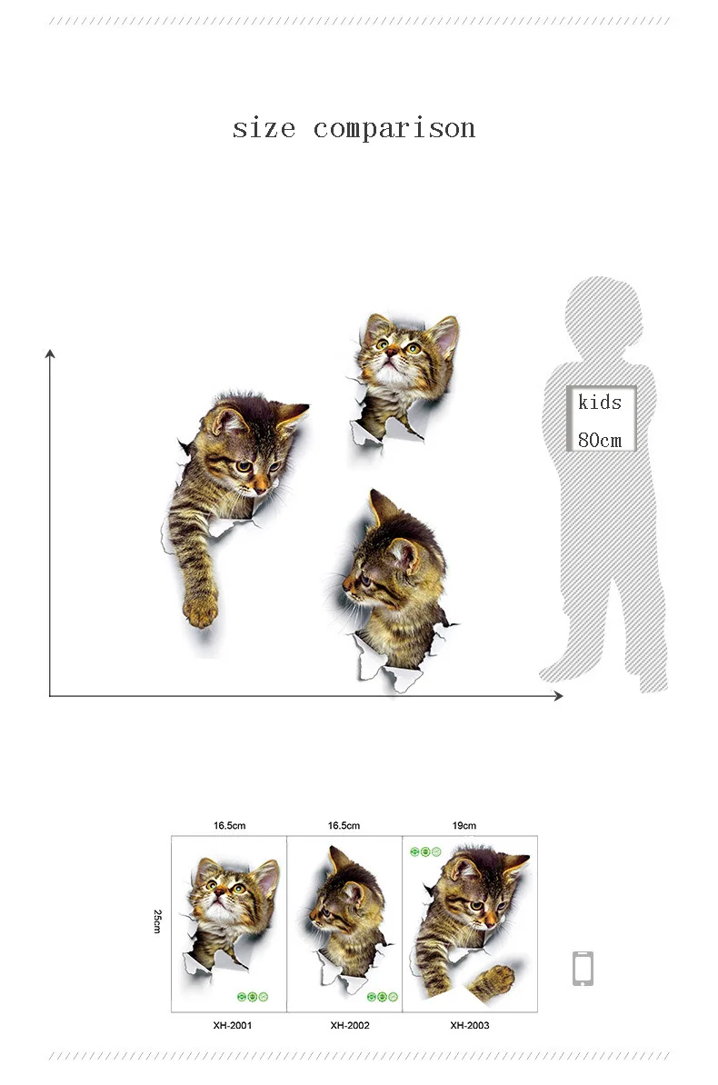 Название: 3d-наклейка с котом Материал: ПВХ Размер: как указано ниже Вес: 20 г