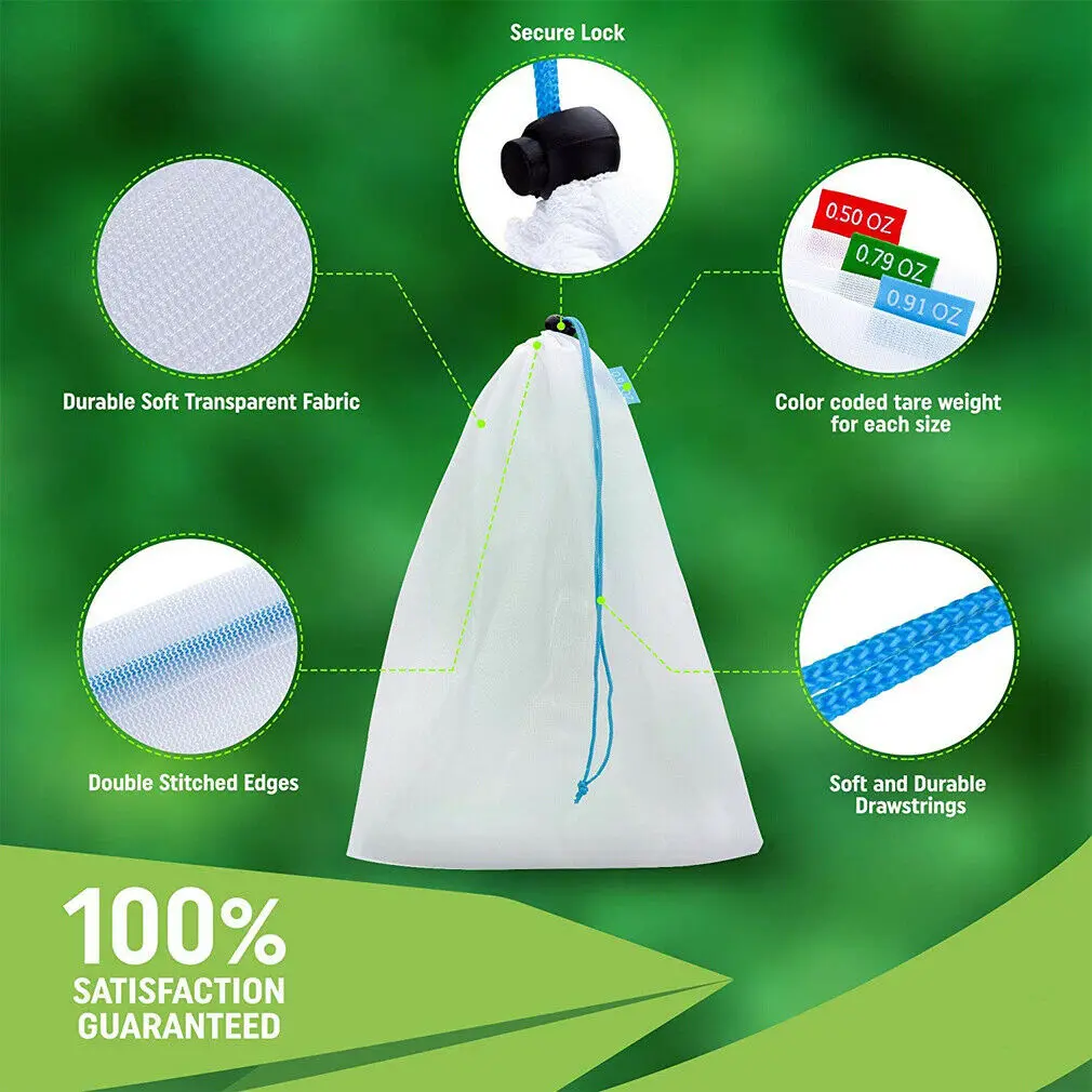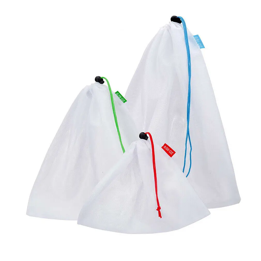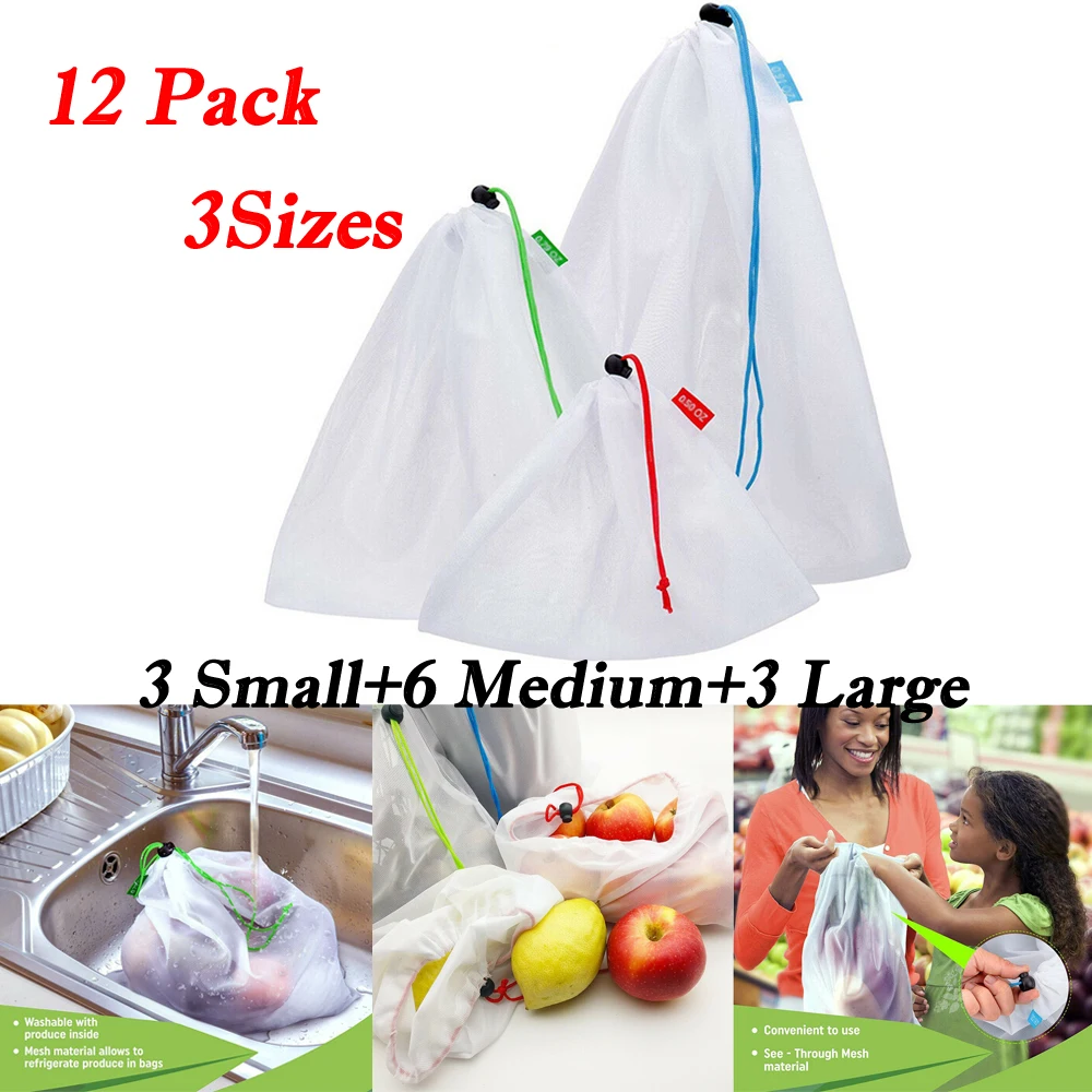 * Цвет: белый * Материал: полиэстер. * Дышащая и моющаяся: дышащая сетчатая конструкция вместо потоотделения в пластиковых пакетах магазина. Моющиеся и многоразовые для продуктов и хранения. * Прочный: Изготовлен из прочного, легкого, легко просвечивающегося сетчатого полиэстера, без пластика и сохранения Окружающей среды. * Мульти-Размер:12 шт многоразовые продуктовые мешки в 3 различных размерах