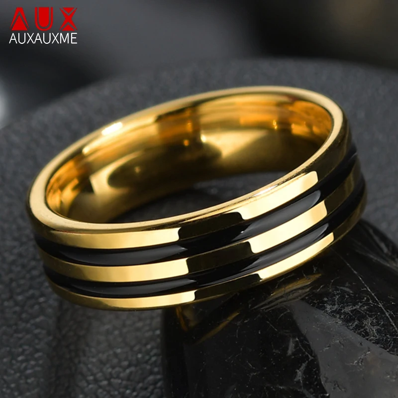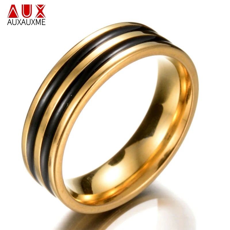 Простые черные двойные кольца Auxauxme с глазурью, золотые титановые стальные аниме Anel Masculino Aneis Alliance для мужчин и женщин, ювелирные изделия