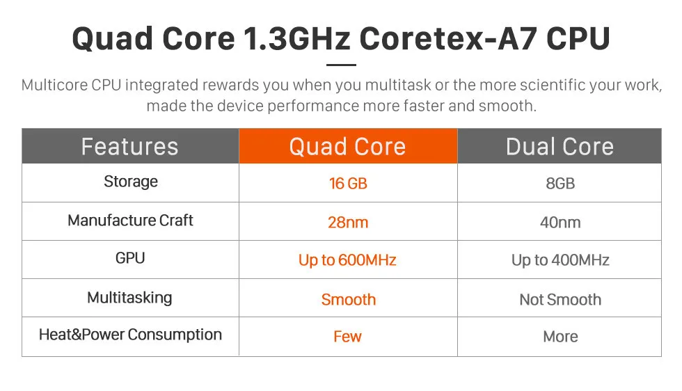 ·ЦП: высокое качество MT8227L Четырехъядерный процессор 1.3-1,5ГГцCortex-A7Процессор с отличной производительностью