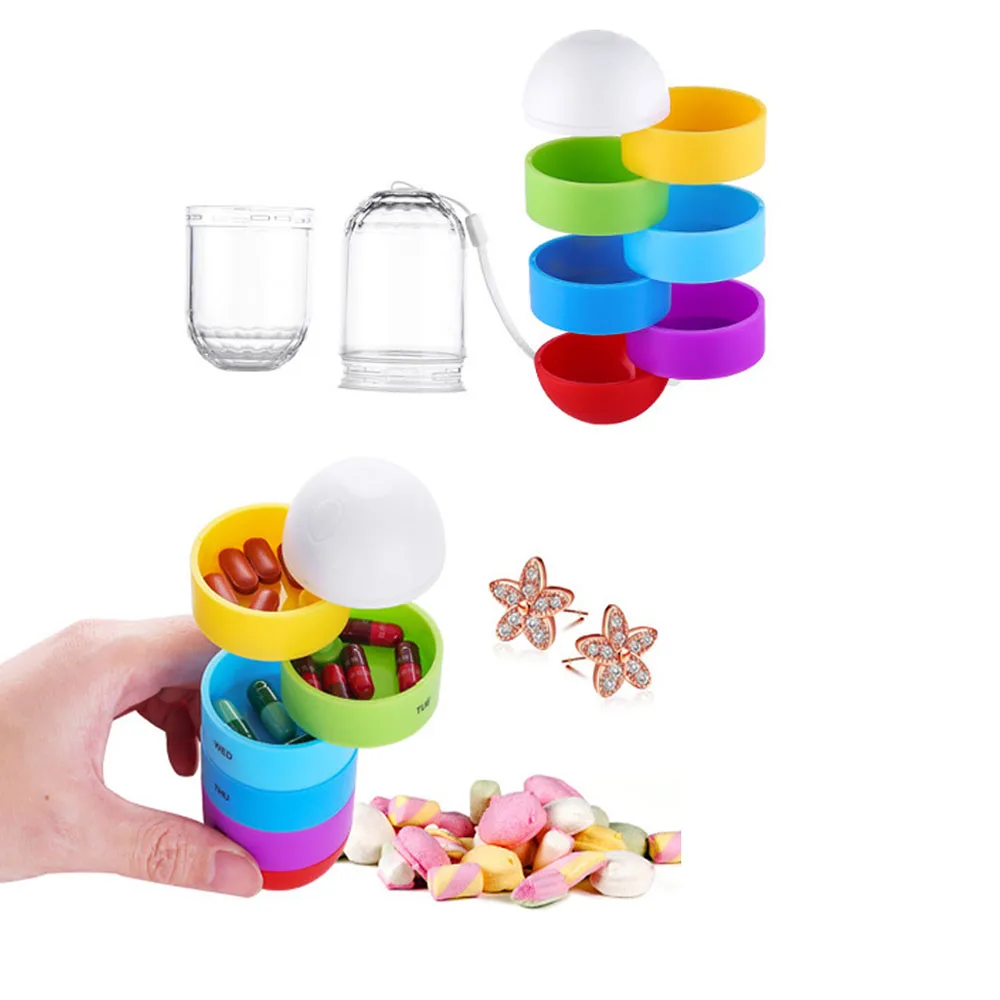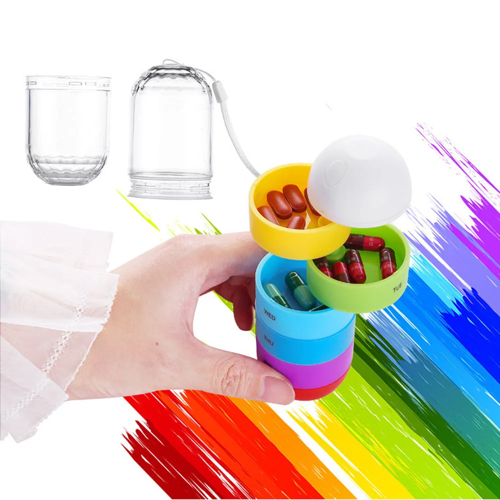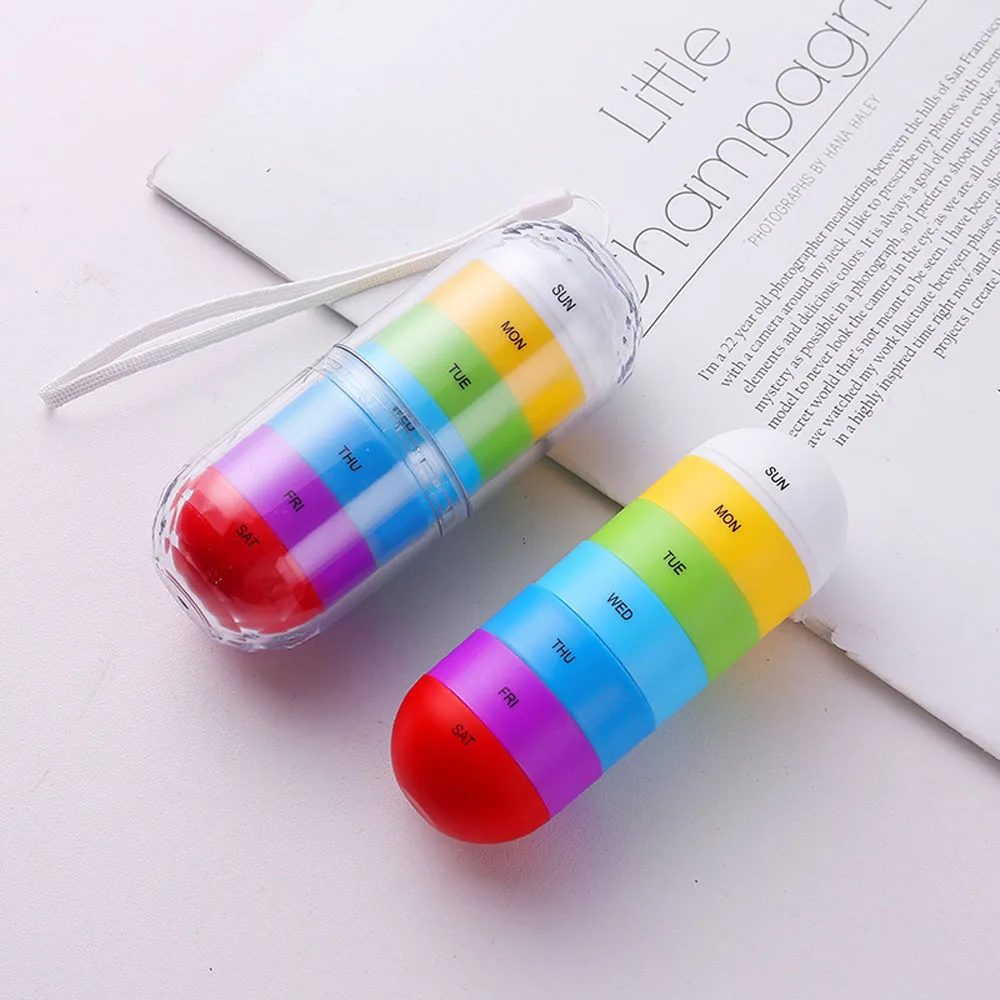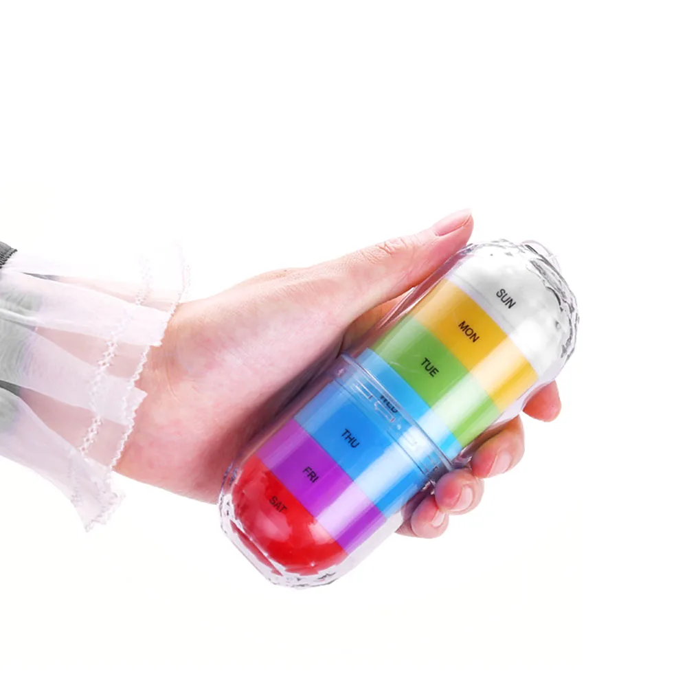 Портативная Водонепроницаемая красочная таблетница, держатель для бутылок, контейнер, много цветов, коробка для таблеток, 7 сеток, пластиковая таблетница, дорожные принадлежности
