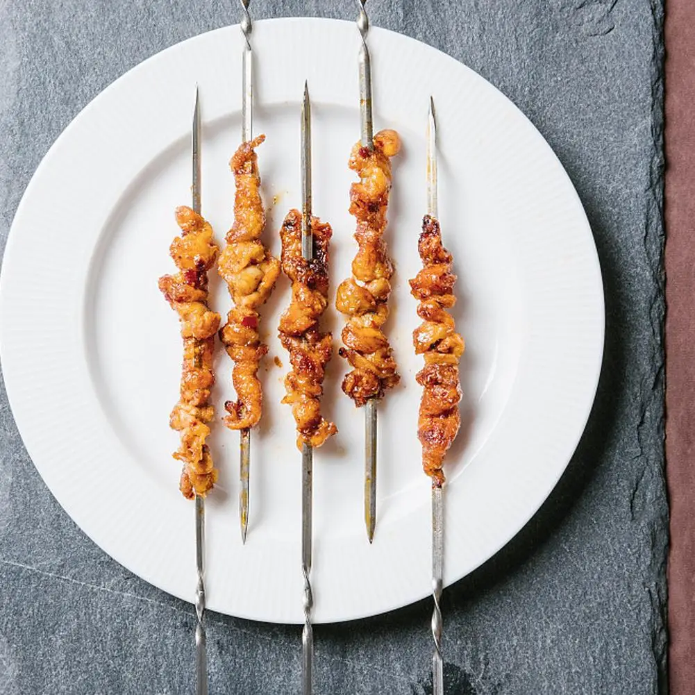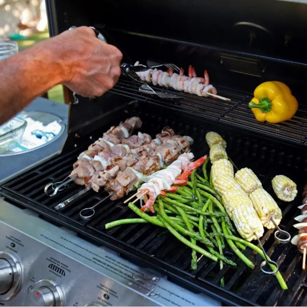 Во время процесса гриля убедитесь, что шпажки остаются стабильными и лучше, чем круглые шпажки.