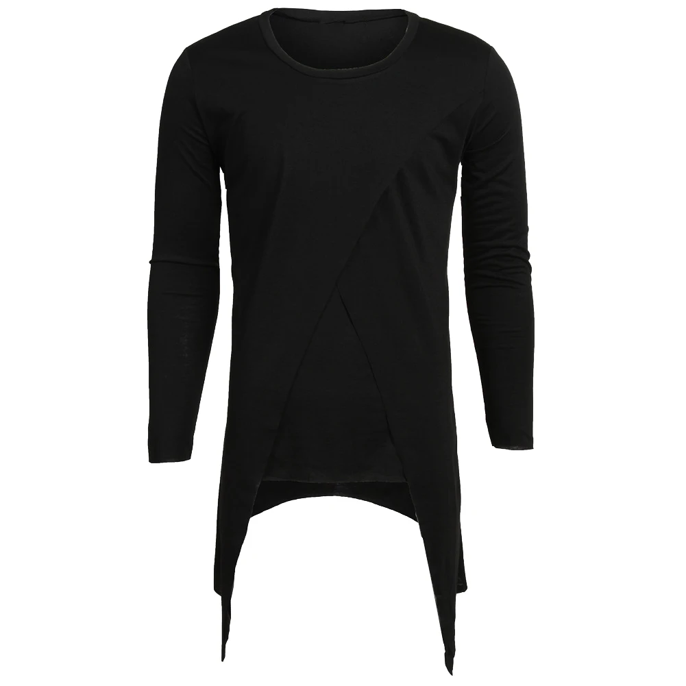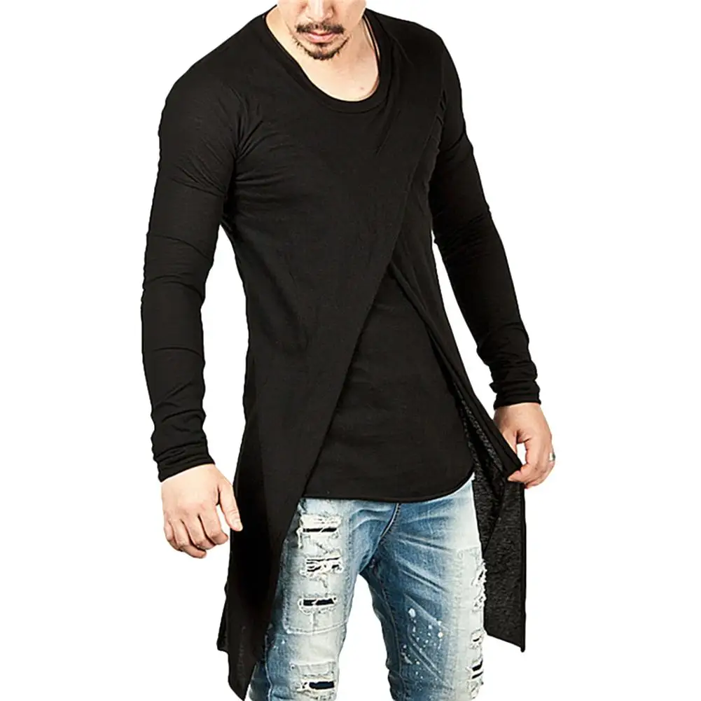 Модные мужские многоярусные ласточкин хвост длинная футболка Топ сплошной цвет мод футболка