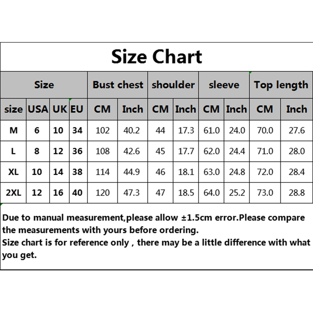 [Наш Размер XL] Обхват груди: 114 см/44,9 ", плечо: 46 см/18,1", рукав: 63 см/24,8 ", Длина: 72 см/28,4" (прибл.)