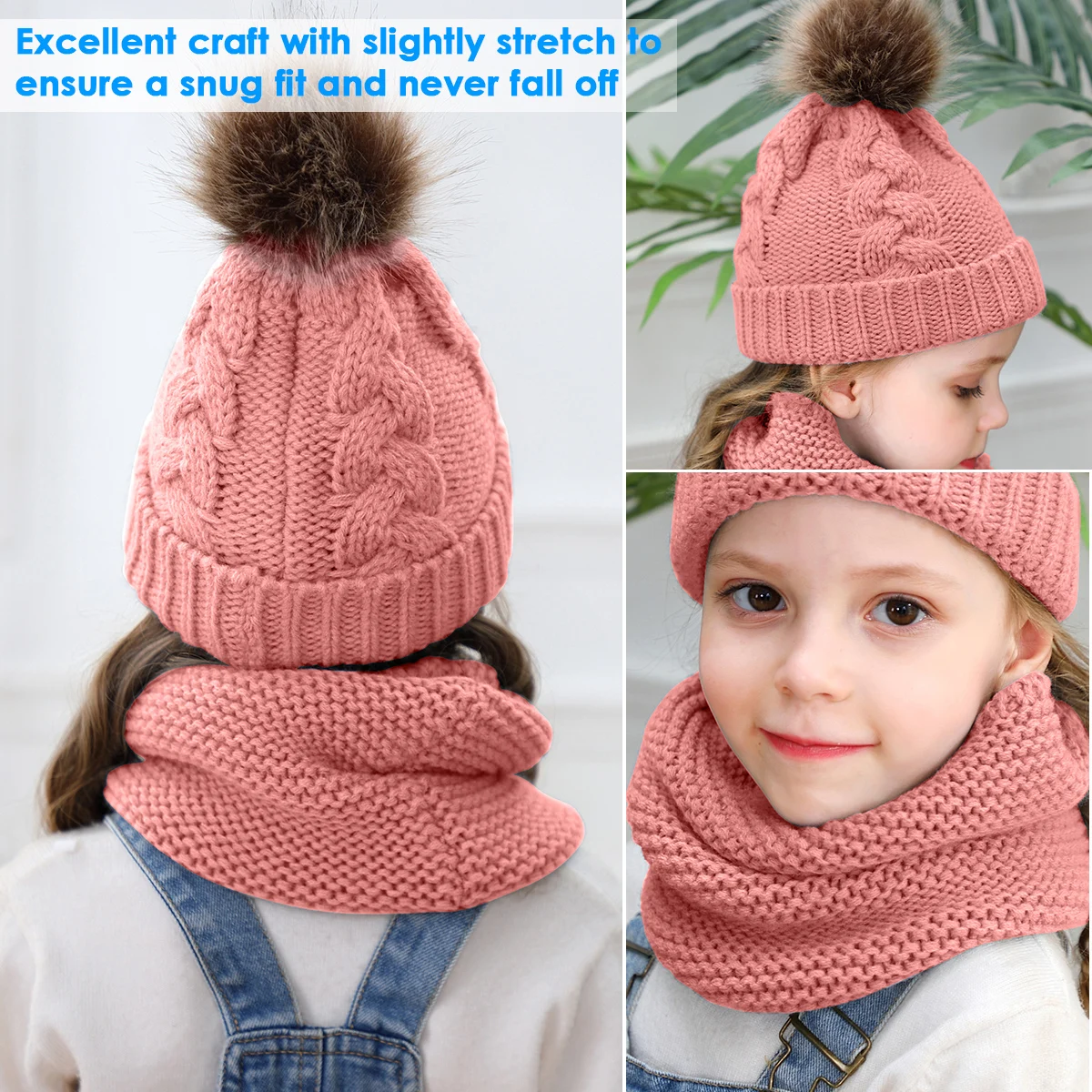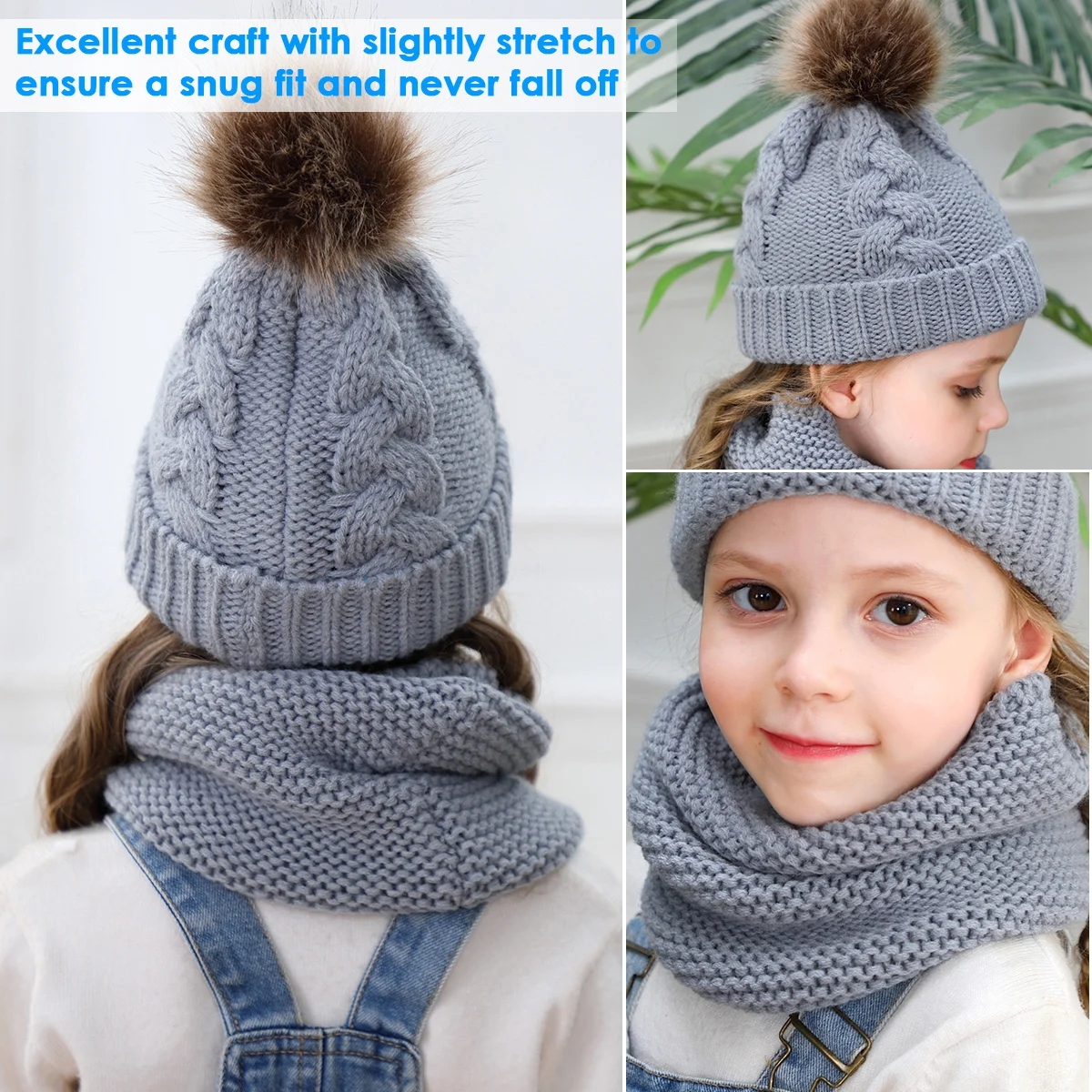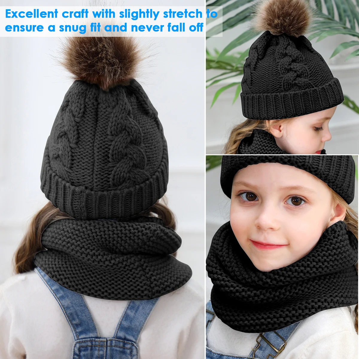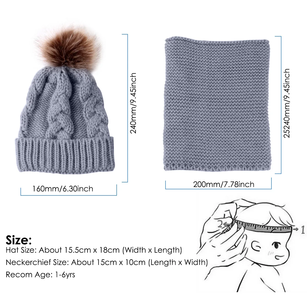 Комплект из 2 предметов для девочек и мальчиков, шапка + шарф, комплект для малышей, детей, зимняя теплая меховая шапка, круглый шарф, Детская вязаная шапка + шарф, сохраняющий тепло
