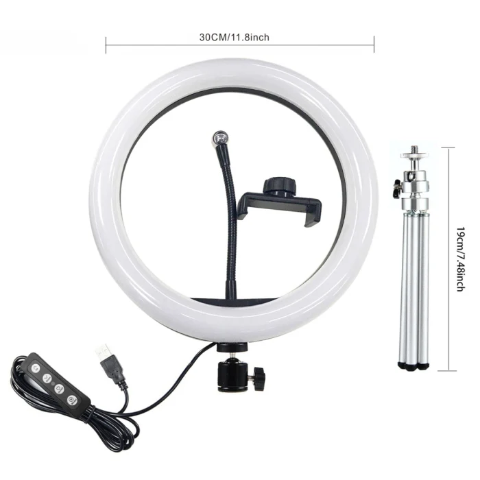1. 30 см кольцевой свет, светодиодный свет, 11 регулируемых яркости для вас на выбор, чтобы удовлетворить все ваши потребности в различных средах. 3 режима освещения: белый, теплый желтый, теплый желтый + белый. Каждый раз, когда вам нужно дополнительное освещение, подходит для камеры, фотографировать, делать видео, читать книги и в живую, и это будет удобно!