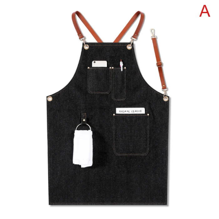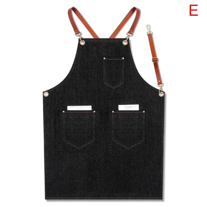 Джинсовый фартук на лямках, нагрудник, фартук, барменная форма для барбекю, шеф-повара, рабочая одежда, Кухонный Фартук с регулируемым кожаным ремешком BDF9