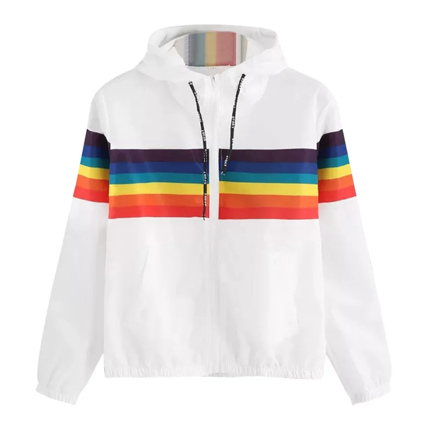 Женское Радужное лоскутное с длинным рукавом o-образным вырезом толстовка с капюшоном Пальто Блузка