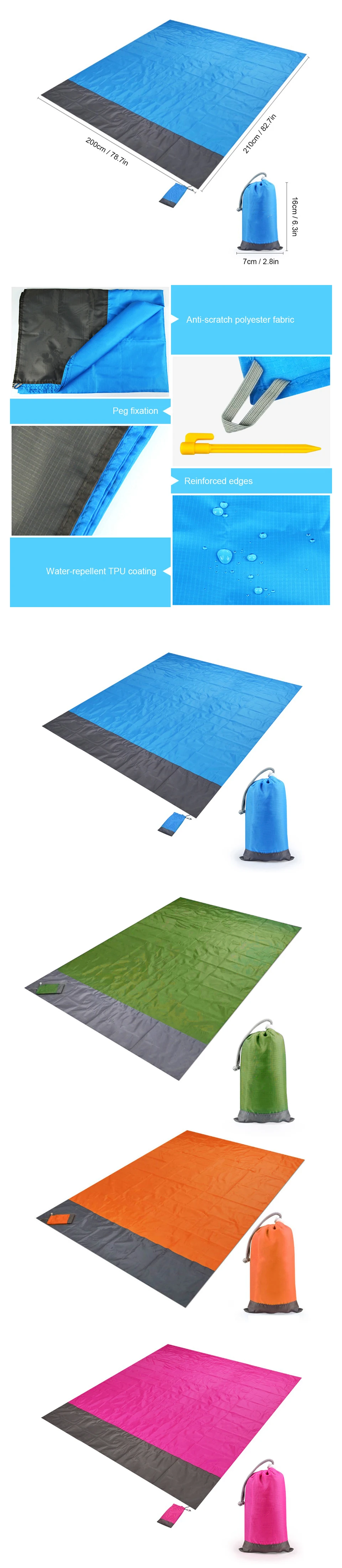 Легко фиксируется-Мы отправим вам 4 колышка для фиксации коврика. Он будет прочно закреплен на пляже или лужайке, чтобы предотвратить выдувание ветра.