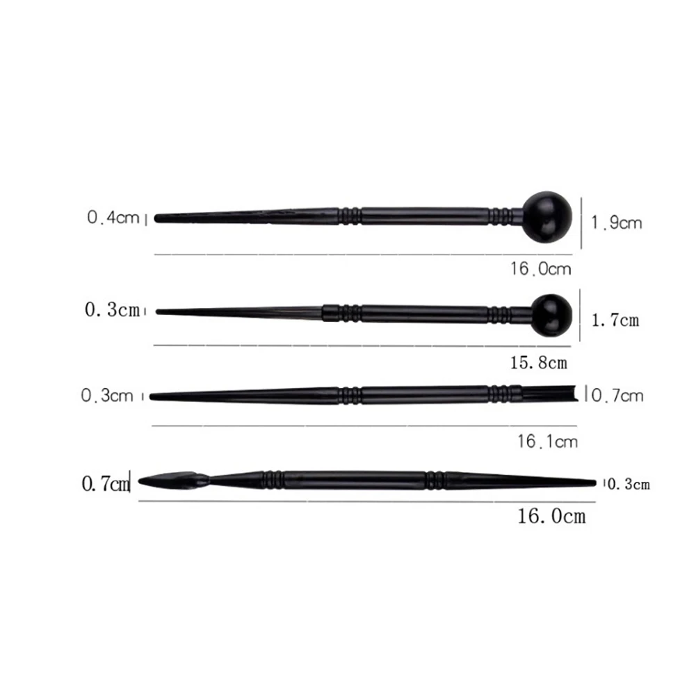 3.Ball Stylus Clay Sculpting Tools,4 double sided stainless steel ball stylus tool kits are with approx. diameter of: 0.4cm,0.6cm,0.8cm,0.95cm,1.1cm,1.3cm,1.6cm,1.9cm. The ball modelling tool is ideal for shaping, frilling petals and leaves.
