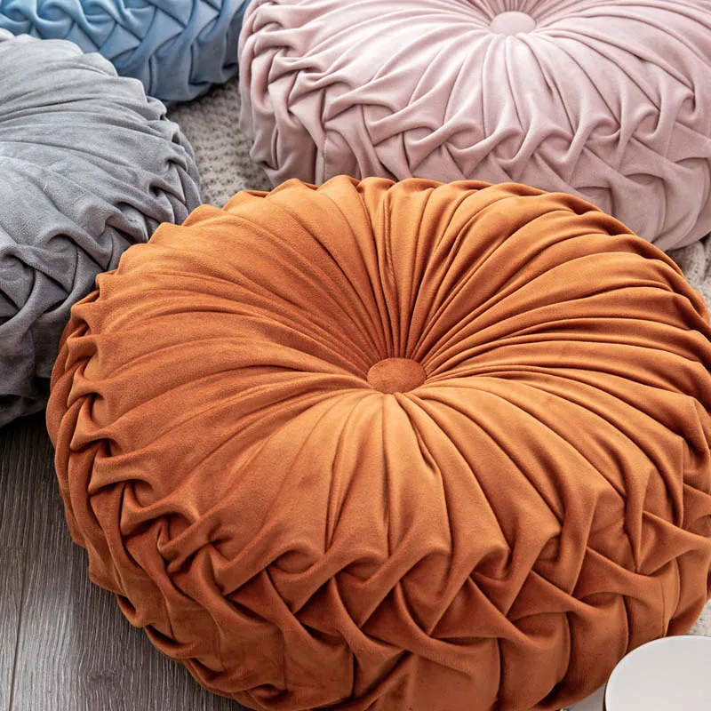 Скандинавская круглая подушка, мягкая подушка для сиденья, Роскошный домашний декор, Бархатная подушка, одноцветная ручная драпировка, подушки в форме колеса