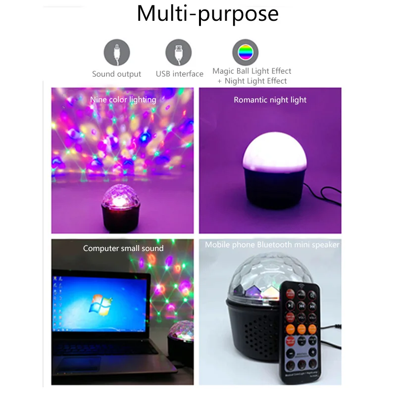 Диджейские огни + bluetooth-динамик 2 в 1:Диско кристалл магический шар огни имеют эксклюзивный 6 бисера высокой яркости кристалл магический шар. Принимает хорошее качество, большой чип, лампы высокой яркости, с долгим сроком службы. Девять цветов приносят красочный вид для вашего удовольствия. Также получил хорошее качество Bluetooth динамик с отличным выходом звука.