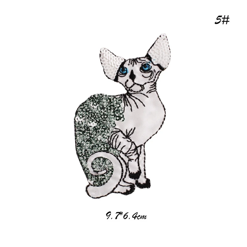 Большой размер цветок милый сиамский Кот вышитый патч блесток животное железо на заплатках одежда стикер блестками значок Сделай Сам швейный Декор