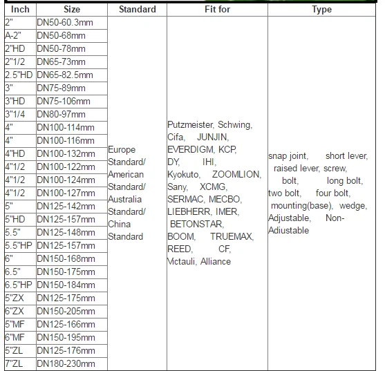 Применение: бетонный насос грузовик зажимы, отечественные и международные большие бренды, могут быть настроены