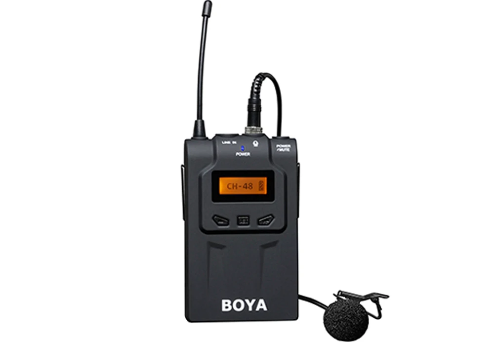 BY-WM6R BOYA-это беспроводной микрофонный передатчик UHF, предназначенный для ENG (сбора электронных новости), EFP (производства электронных полей), DSLR видео и других профессиональных приложений. И может работать с BY-WM6R BY-WM8R. Беспроводной микрофон UHF оснащен нательный передатчик и всенаправленная нагрудная гарнитура микрофон. Передатчик легкий и простое меню для работы. Нательный передатчик включает микрофонный разъем и линейный разъем.
