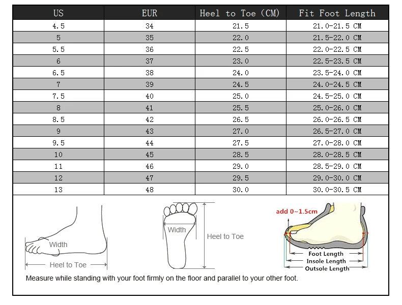 Пожалуйста, выберите размер, основываясь на длине вашей голой ступни, в соответствии с этой таблицей размеров.