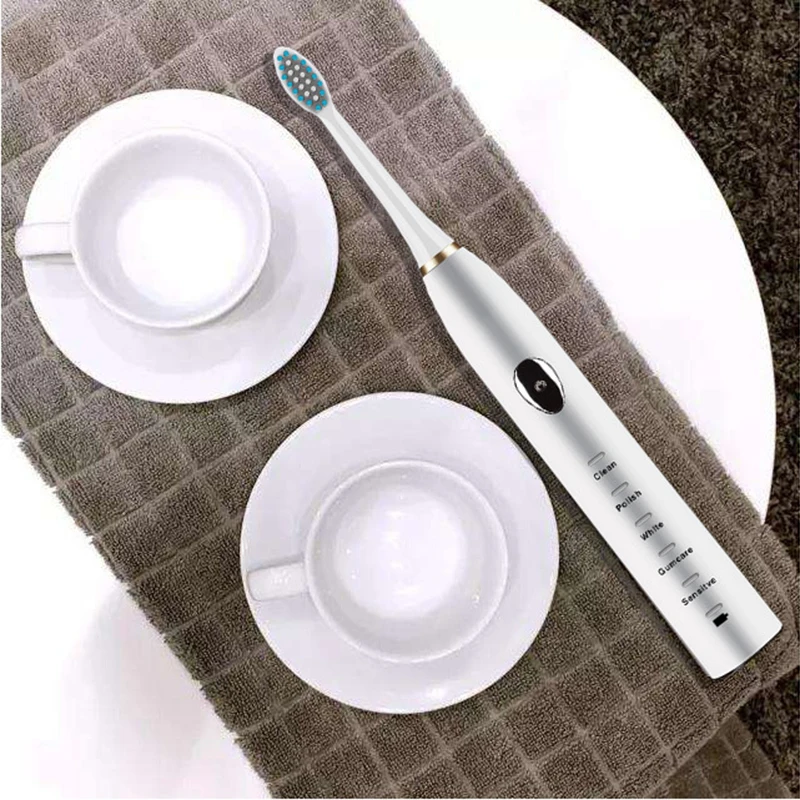 Основные функции: ● Высокой эффективности магнитной левитации мотор для того чтобы эффективно для чистки зубов gap и удаления зубного налета ● Кисточка для рисования с высокой плотностью без металла без царапин или повреждения поверхности ● 5 режимов очистки для вашего свободного выбора ● Отличная зубная щетка для путешествий-супер легкая ● Компактный и интегрированный корпус, водонепроницаемость IPX7 Параметры: ● Мощность: 1 Вт ● Напряжение: 3,7 в ● Вход: 5 В/1 А Посылка включает в себя: 1 x Зубная щётка ручка 4 x насадки для зубной щетки 1 х USB Зарядное устройство