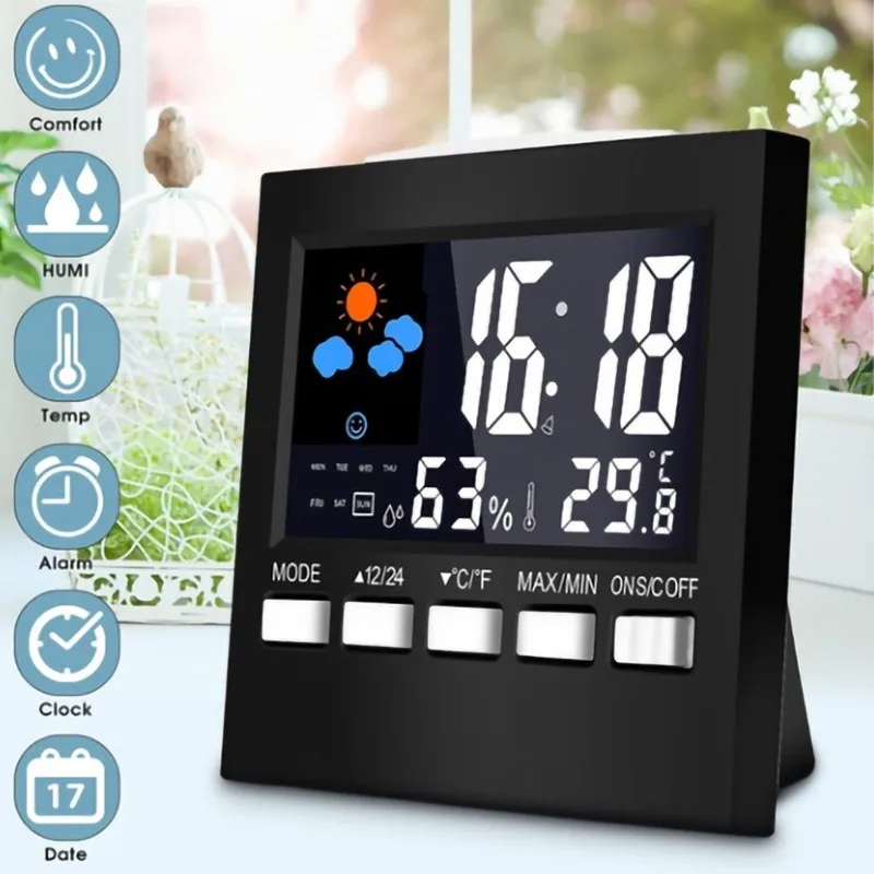 1. Отображение времени: 12/24 часов 2. Срок производства тиража: 2000-2099 3. Температура Дисплей: Температура, градусы Цельсия переключения 4. Будильник/функция повтора: может установить будильник 1 Во-первых сигнал тревоги 5. Температура диапазон: 0 градусов по Цельсию-50 градусов по Цельсию (32 градусов по Цельсию-122 градусов по Цельсию) 6. Голосовое задняя светильник Функция: Пресс в светильник кнопку, чтобы включить сзади светильник включения или выключения. Вы также можете включить светильник нажатием руки в пределах 1 м или коснитесь стола, чтобы включить светодиоднyю подсветку с задней светильник. Светильник отключается в течение 5 секунд. Это удобно для ночного просмотра. Аккумулятор: 2 батареи XAAA (не входят в комплект) Посылка включает в себя: 1 шт * часы 1 шт. * Руководство по эксплуатации Примечание: размер измеряется вручную, а также есть так как измерения выполнены вручную. Пожалуйста, ознакомьтесь с фактическим товаром.Продукт Размеры