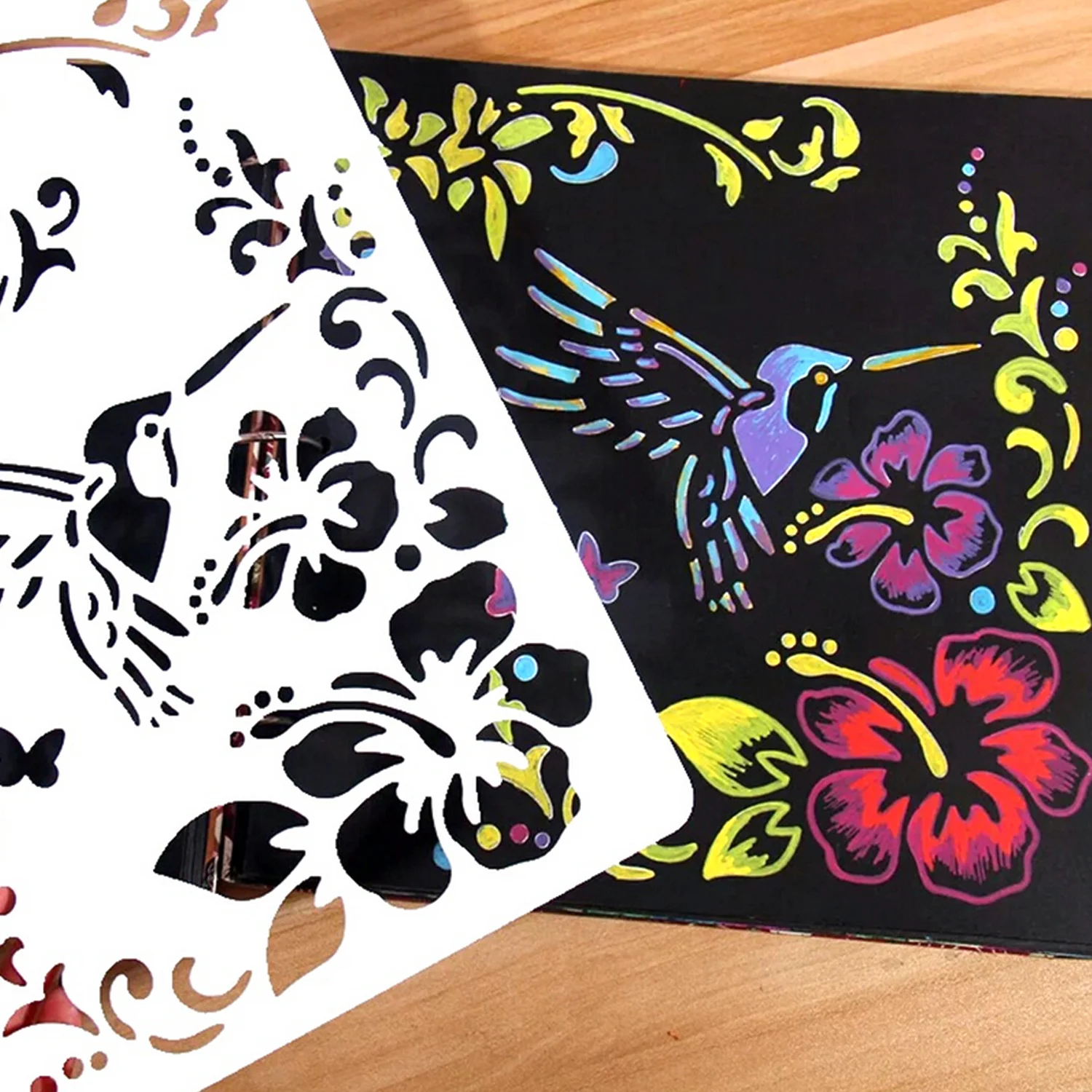 Удивительные и удобные граффити-бумаги, яркие цвета скрываются под черной поверхностью, поэтому вы можете нарисовать красочную картину только с помощью палочек, а не ручек для рисования