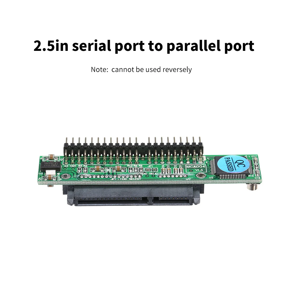 Это горизонтальный конвертер SATA в IDE. 44-контактный разъем IDE подходит для жесткого диска SATA 2,5 ''ноутбука.