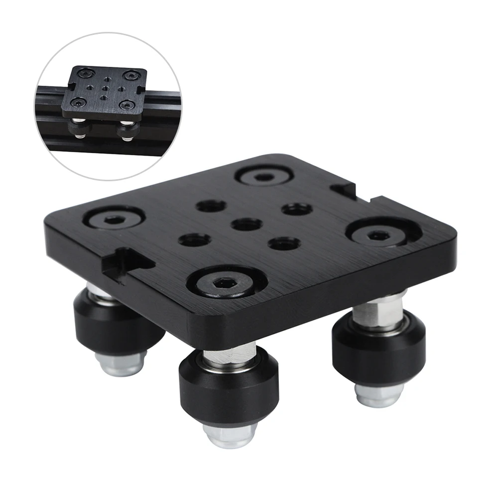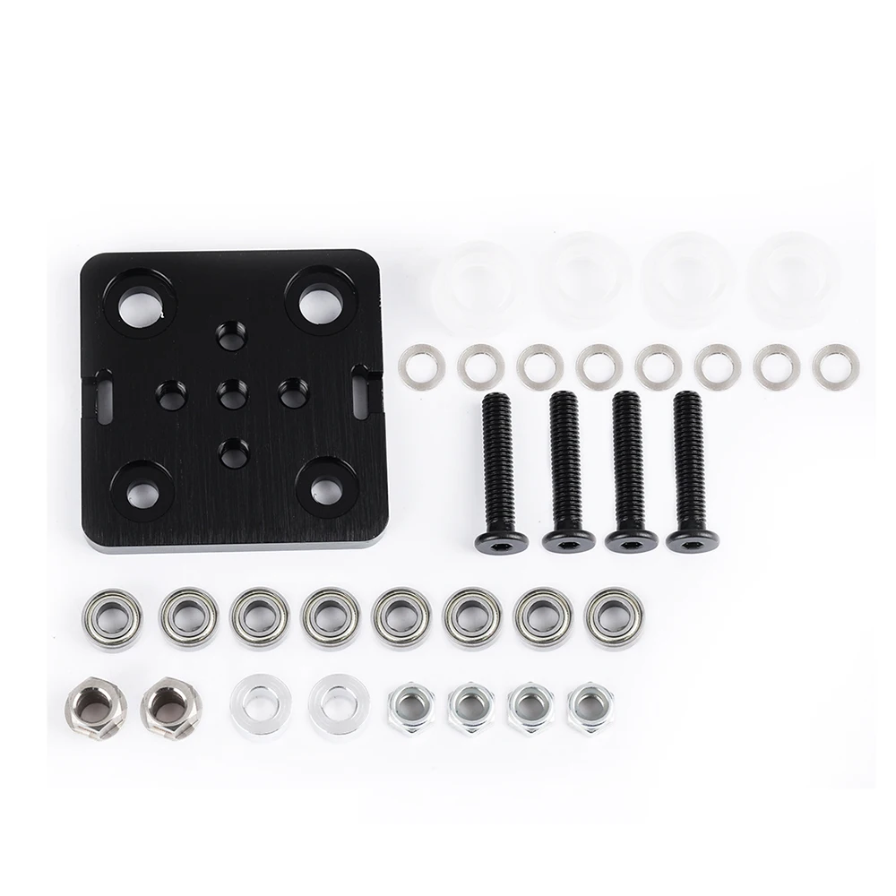 Посылка поставляется с 1 * алюминиевой пластиной, 4 * delrin Мини V колесом, 2 * алюминиевые прокладки 6 мм, 2 * эксцентриковые прокладки 6 мм, 4 * низкопрофильные винты 25 мм, 4 * низкопрофильные винты 10 мм, 4 * M5 гайка, 4 * shim, простота установки.
