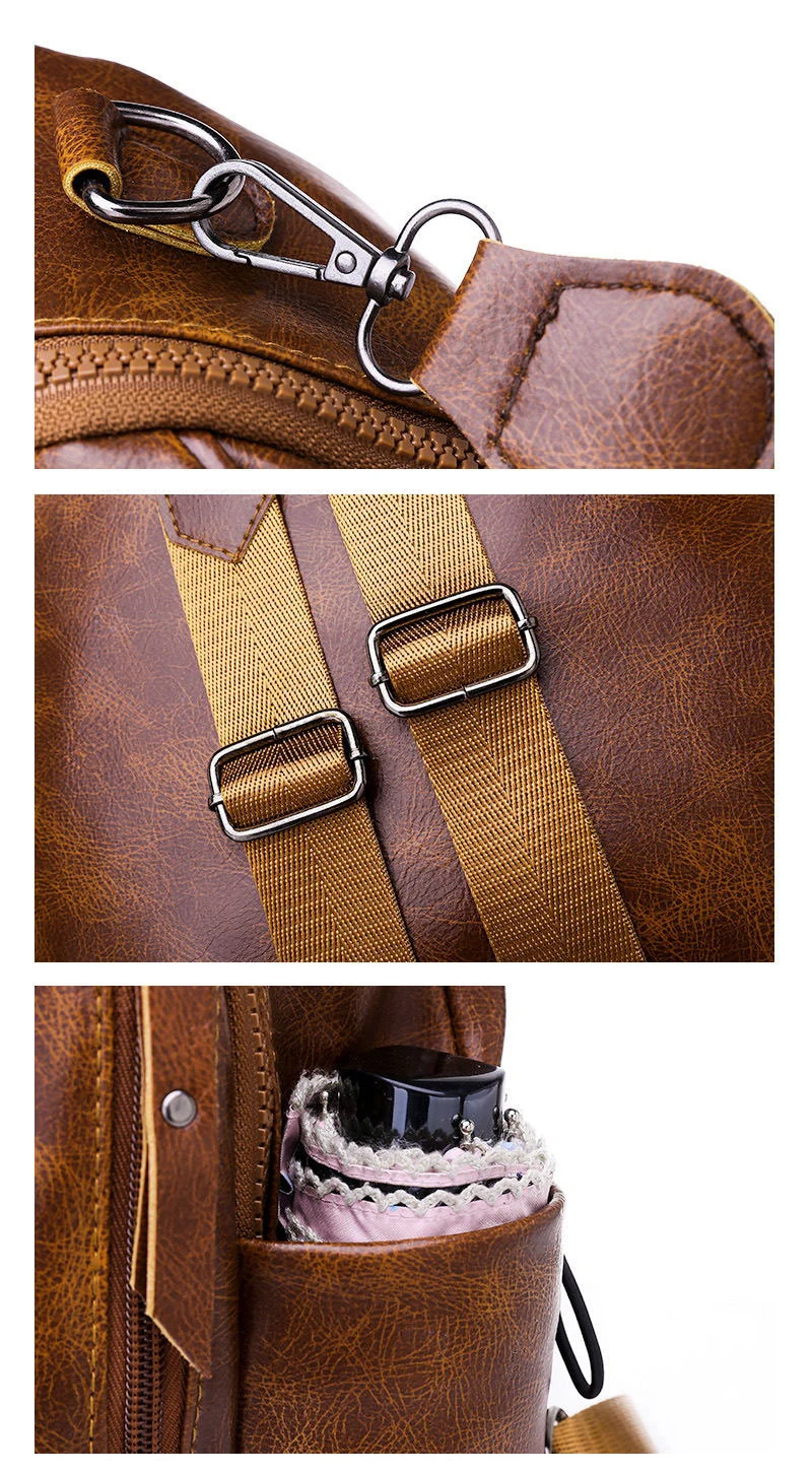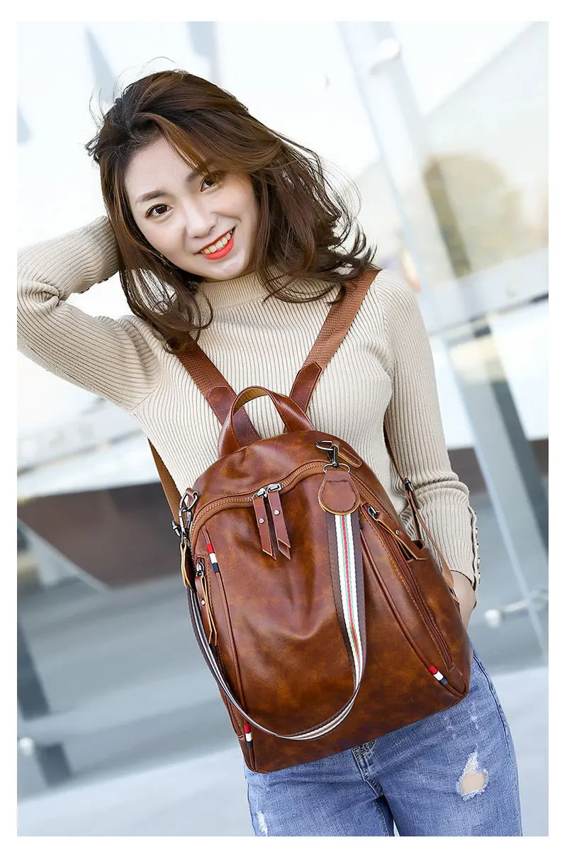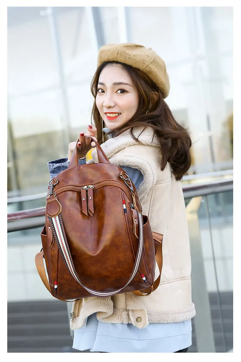Новинка 2019, кожаный рюкзак для женщин, высокое качество, одноцветные сумки через плечо, Противоугонный тройной ремень, женские водонепроницаемые школьные сумки для девочек