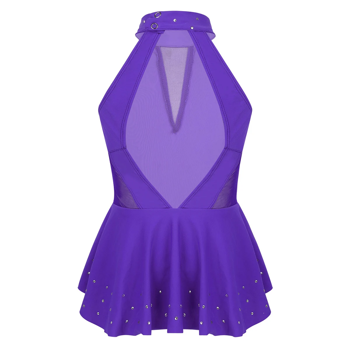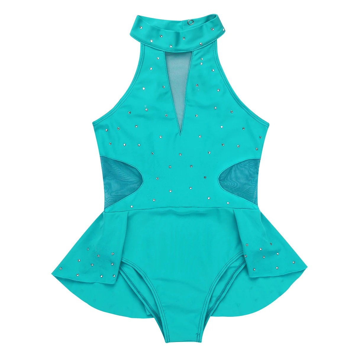 Сетчатый шов спереди и две стороны талии. 1 слой с оборками и круглым вырезом сзади на талии. Красивая Одежда для танцев для вашей девочки.