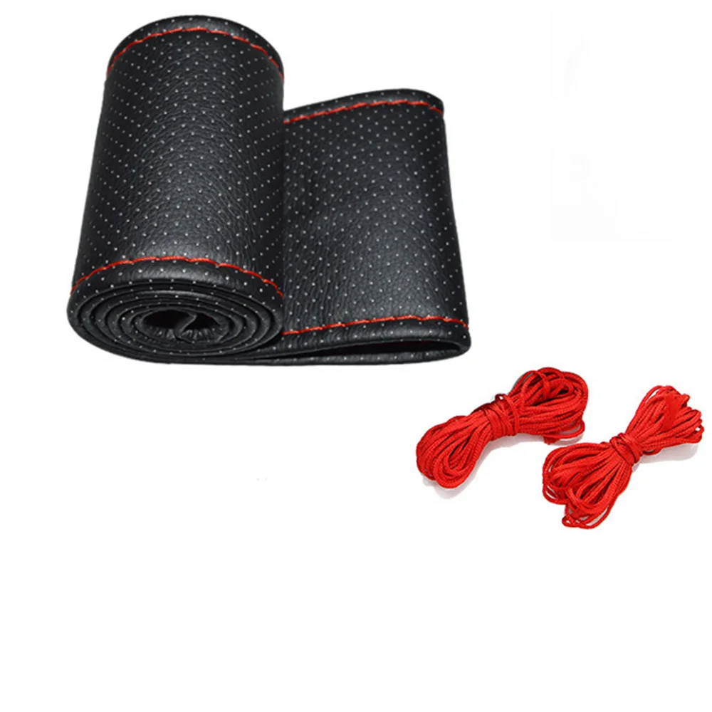 Универсальный автомобильный чехол на руль DIY нескользящий автомобильный Стайлинг Руль чрезвычайно мягкая кожаная оплетка для автомобиля с иглой и резьбой