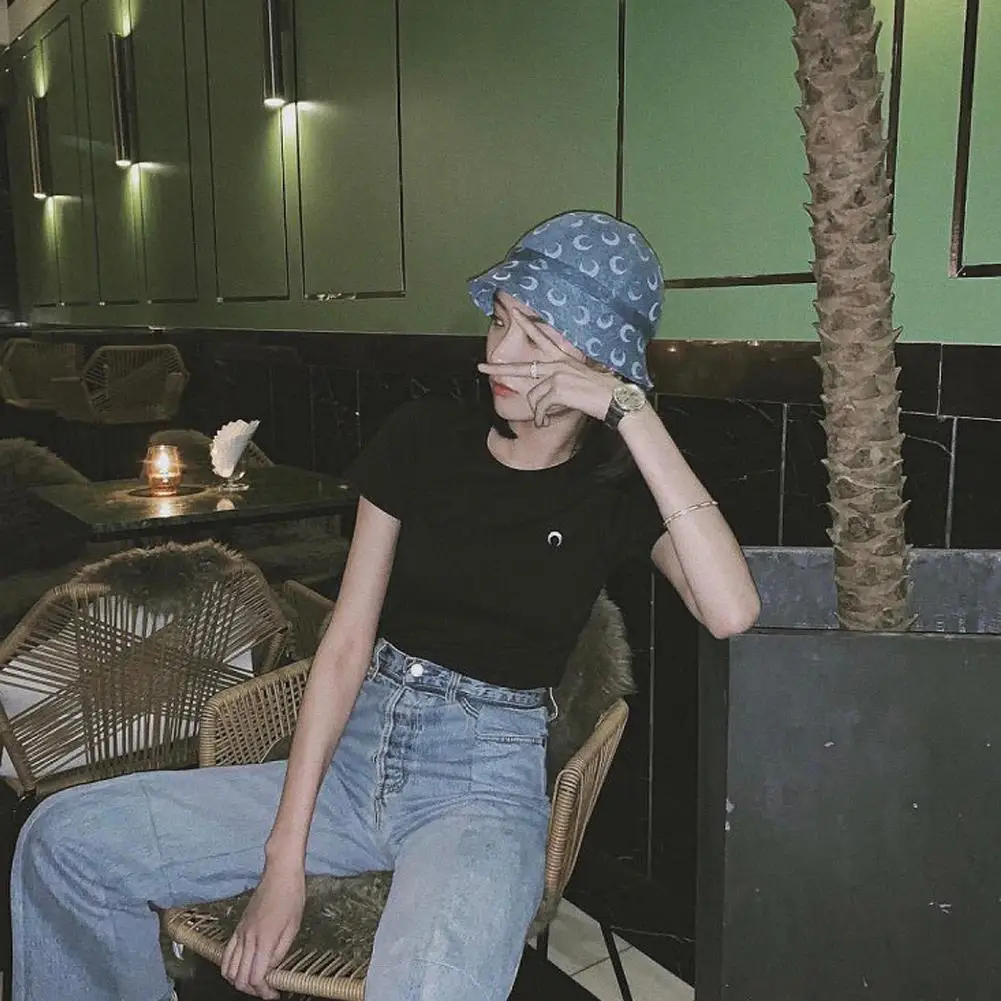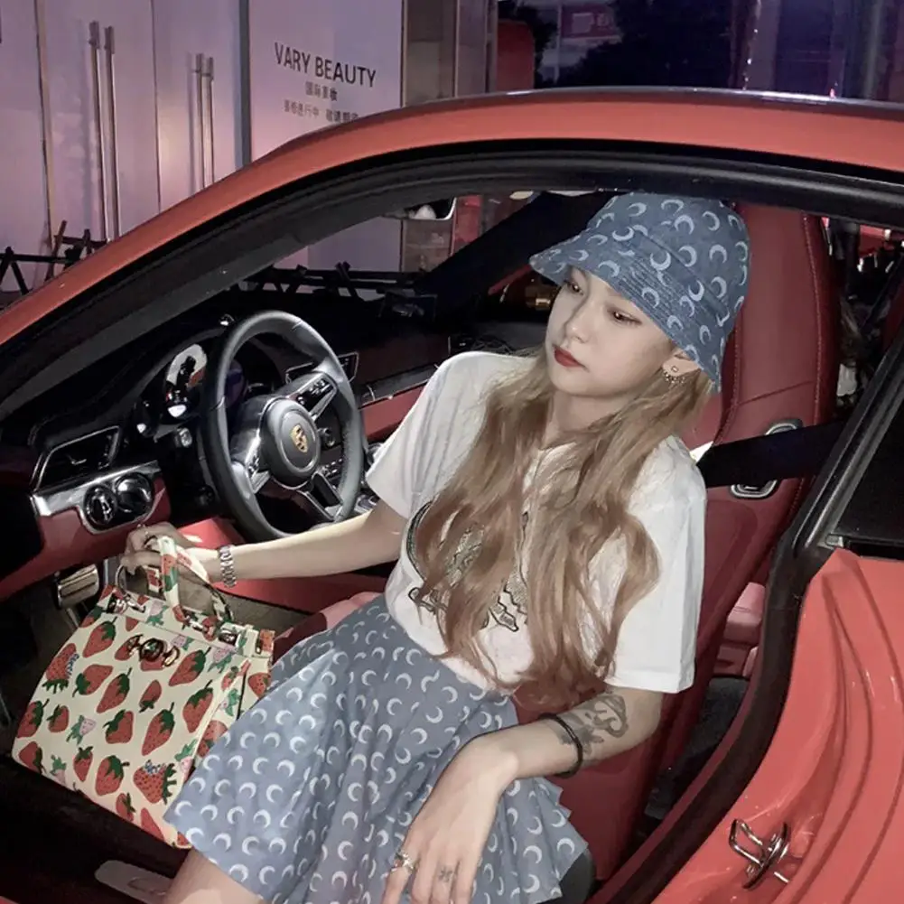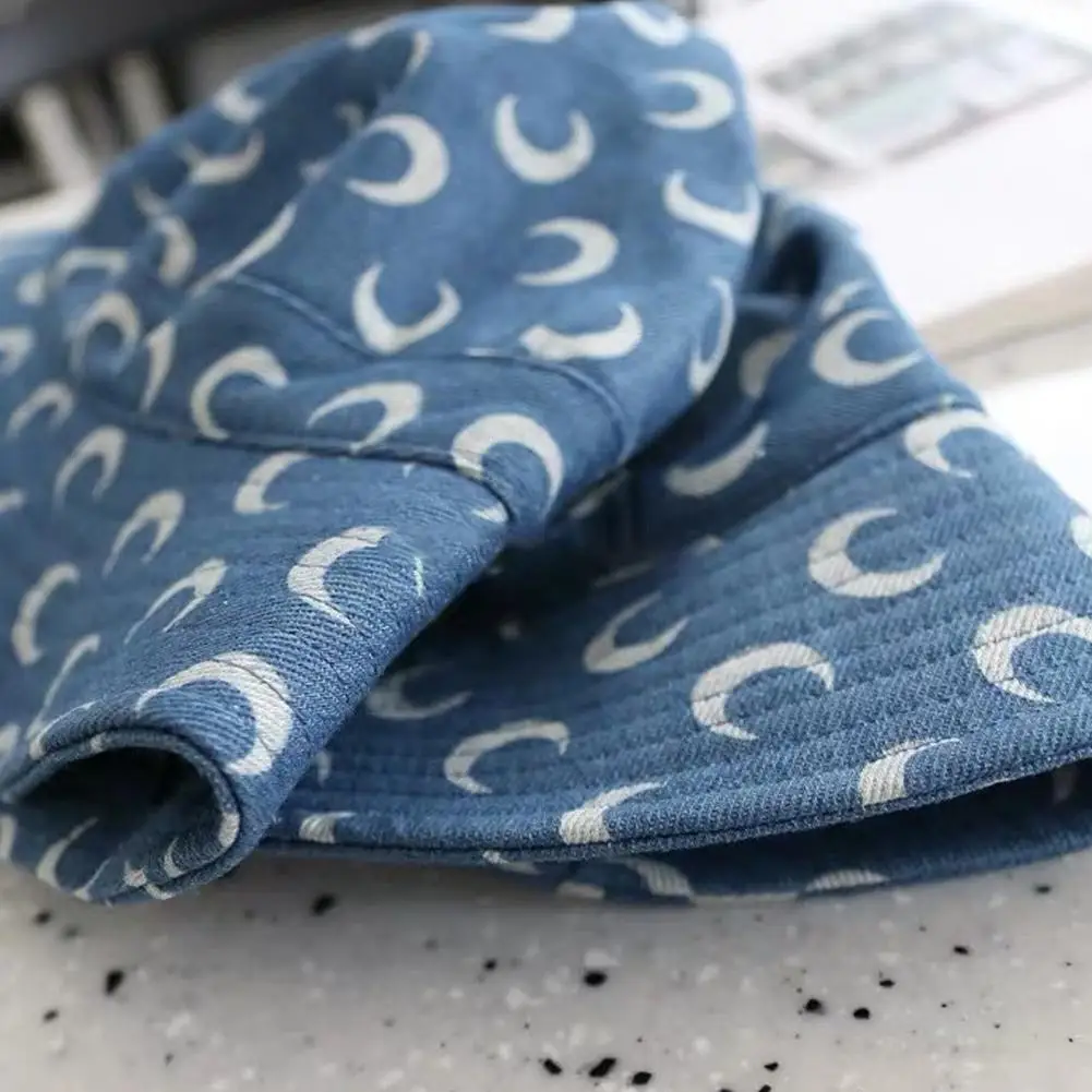 DS style s 1 шт. унисекс японский стиль Солнцезащитная Рыбацкая шляпа модная полумесяц печать джинсовая синяя Панама шляпа