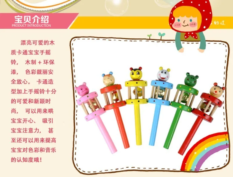 Описание: 3 вида мультяшных деревянных игрушечных колокольчиков. Звуки хрустящие, но не жесткие. Прост в использовании, это музыкальная игрушка для просвещения детей.