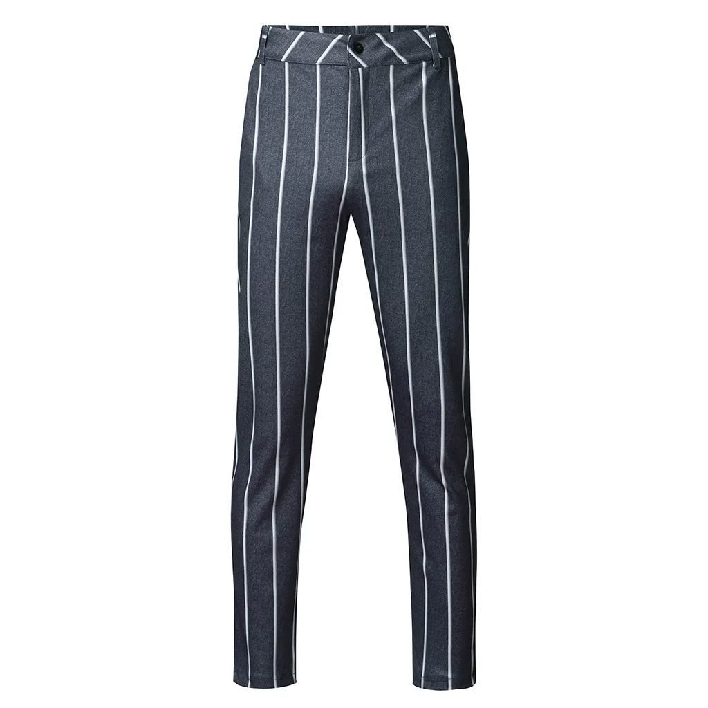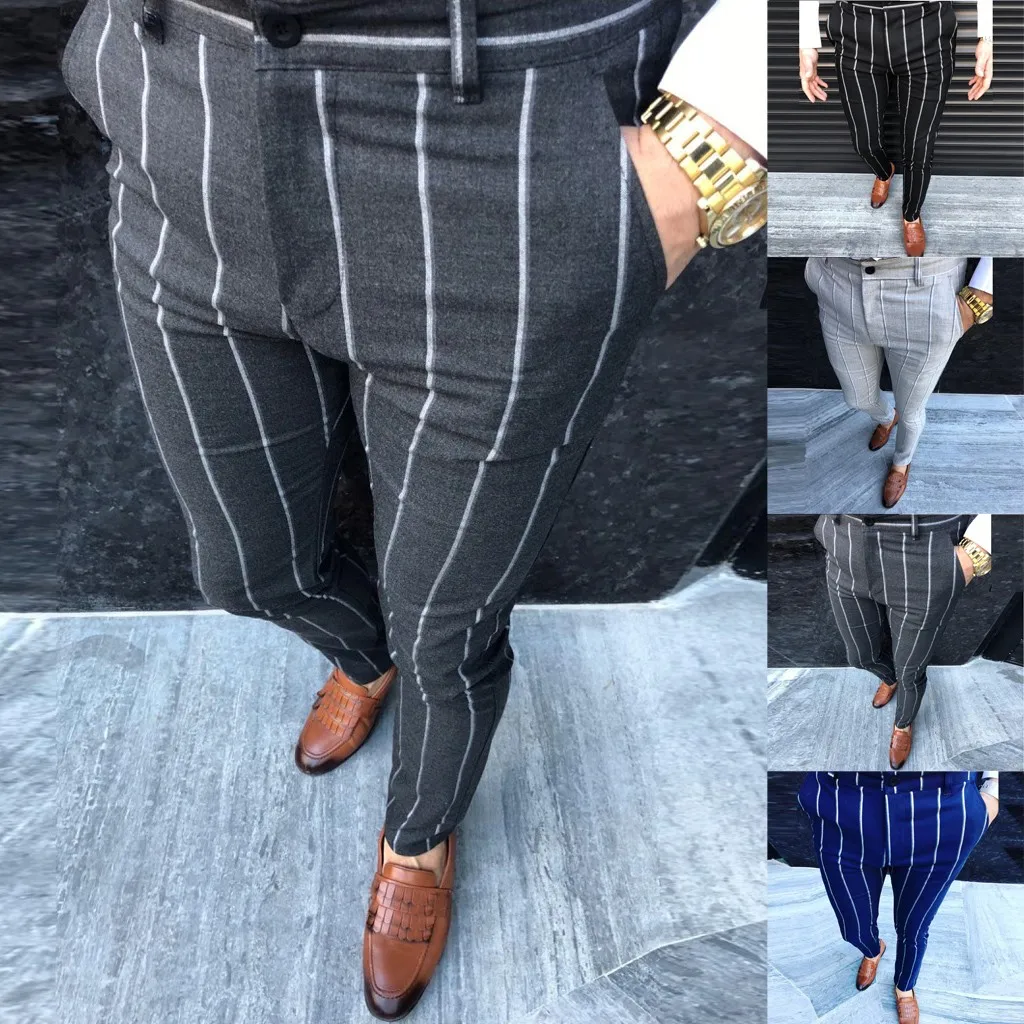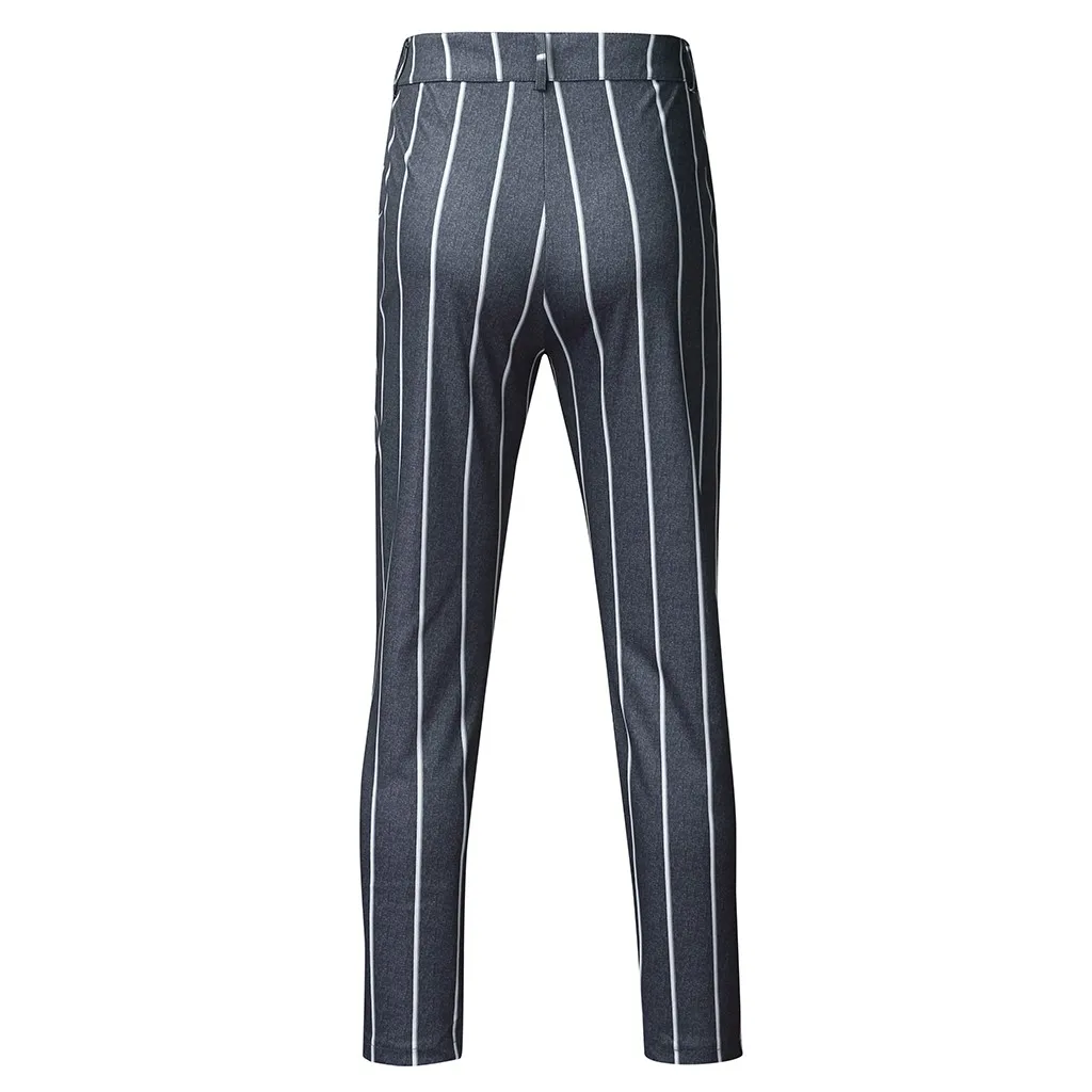 Модные мужские повседневные бизнес облегающая полосатая печать молния длинные брюки